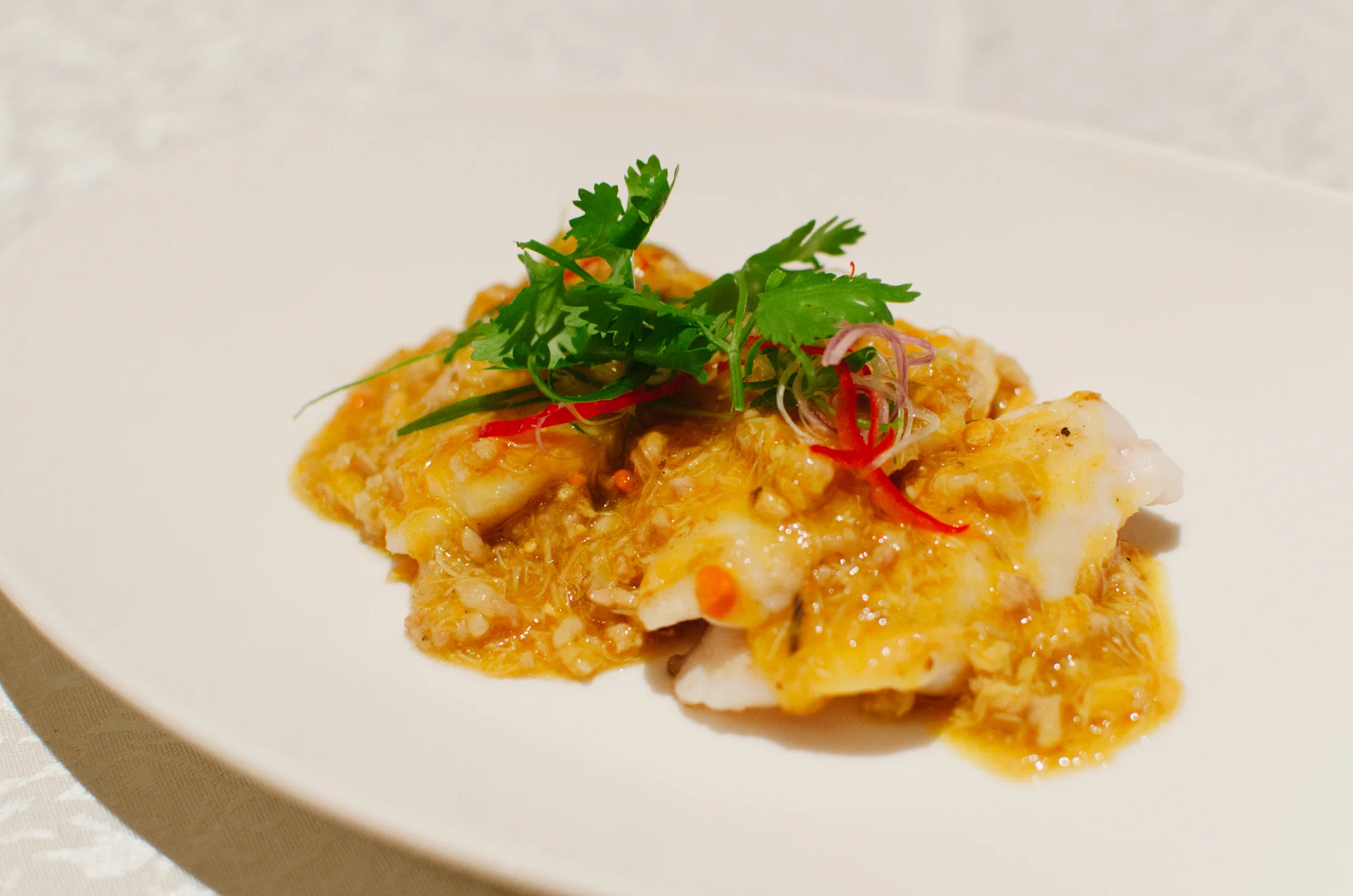 Pan-fried Sliced Grouper Fish with Crab Meat, Crab Roe and Minced Pork