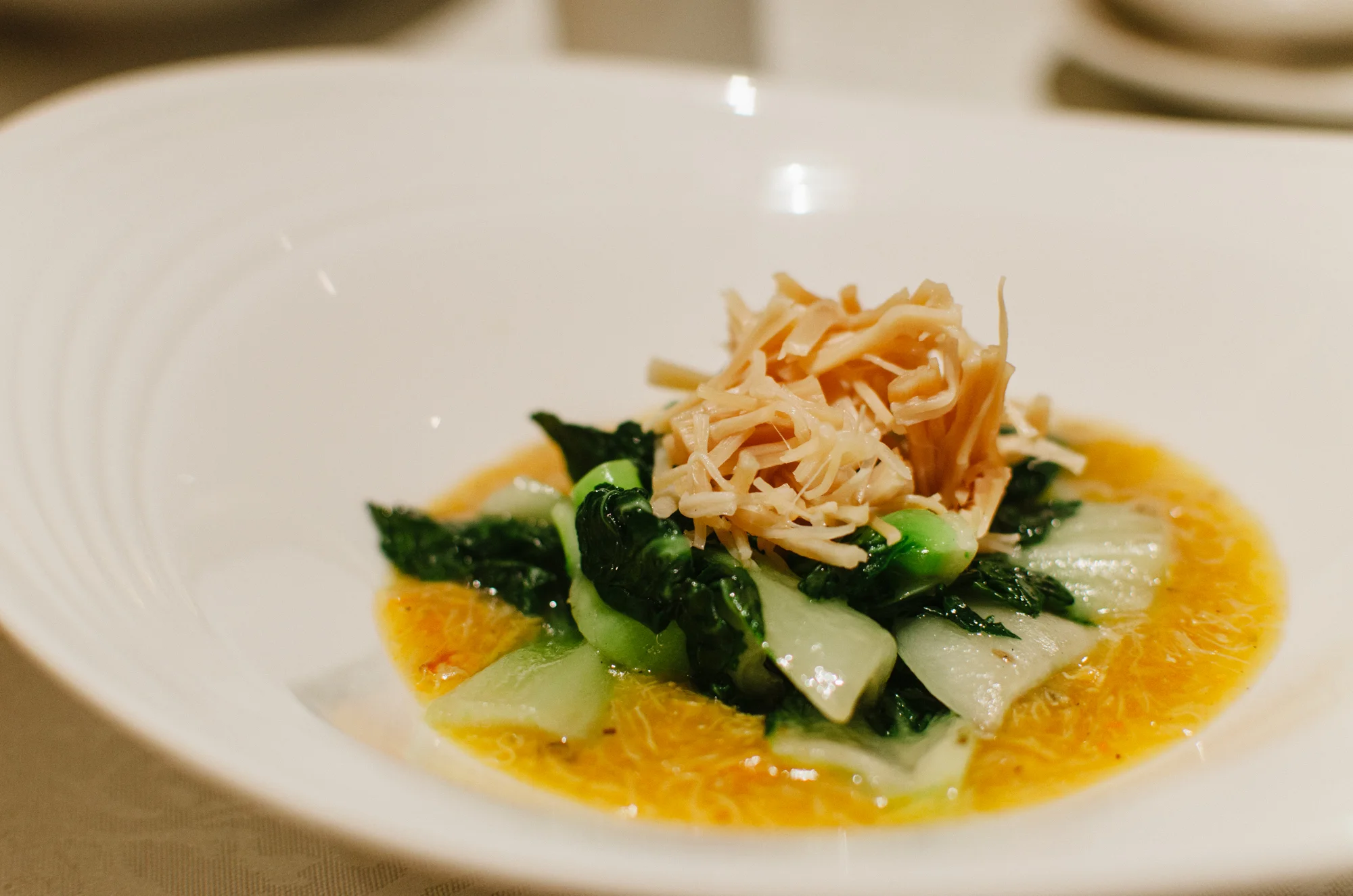 The fifth dish, the Braised White Cabbage with Dried Scallops, Crab Meat and Crab Roe, is perhaps one of my favourite dishes in this tasting menu. Honestly, I did not think much about this dish initially when I saw it in the menu but this is an extremely flavourful dish with a good crunch from the vegetables. This dish truly presents a harmony of different textures and flavours that go together. The dried scallops were rehydrated but flavourful and the sauce was similar to the previous dish but somehow truly showcased itself in this course.