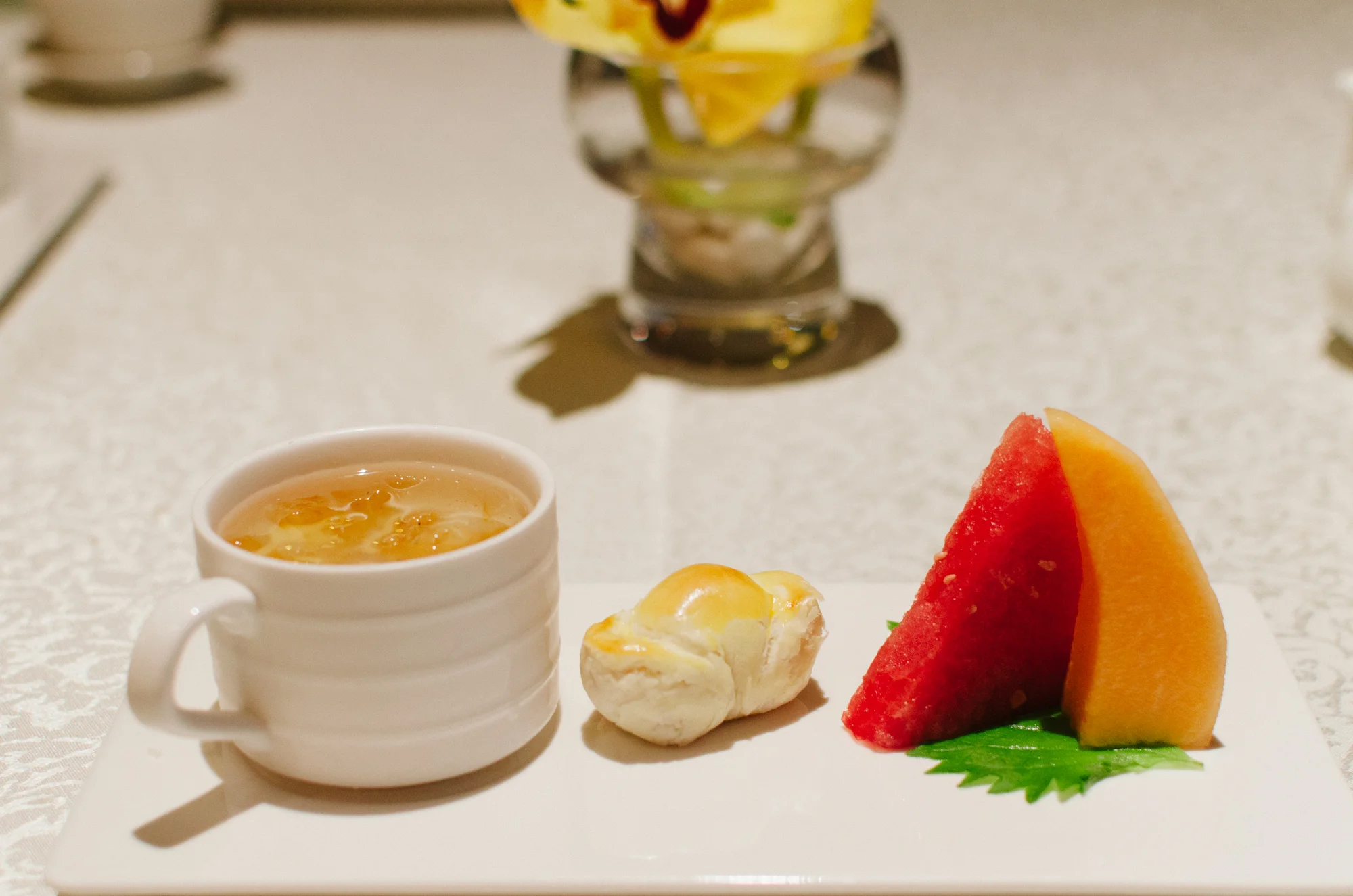 The final dish (before dessert) is always a carbohydrate - Wok-fried Rice with Hairy Crab Meat and Fish Roe. The fish roe provides crunch and texture to this delicious dish. One thing that I really like about Hai Tien Lo is the XO Sauce that they use in their dishes. My tip for you is to ask politely for a small dish of XO Sauce which goes incredibly well with this dish. The Chinese believe that a good fried rice will contain enough "Wok Hei" which metaphorically translates to the breath of the wok. This requires skills in fire control (unfortunately you can't get this through induction cooking) and tossing food around masterfully.