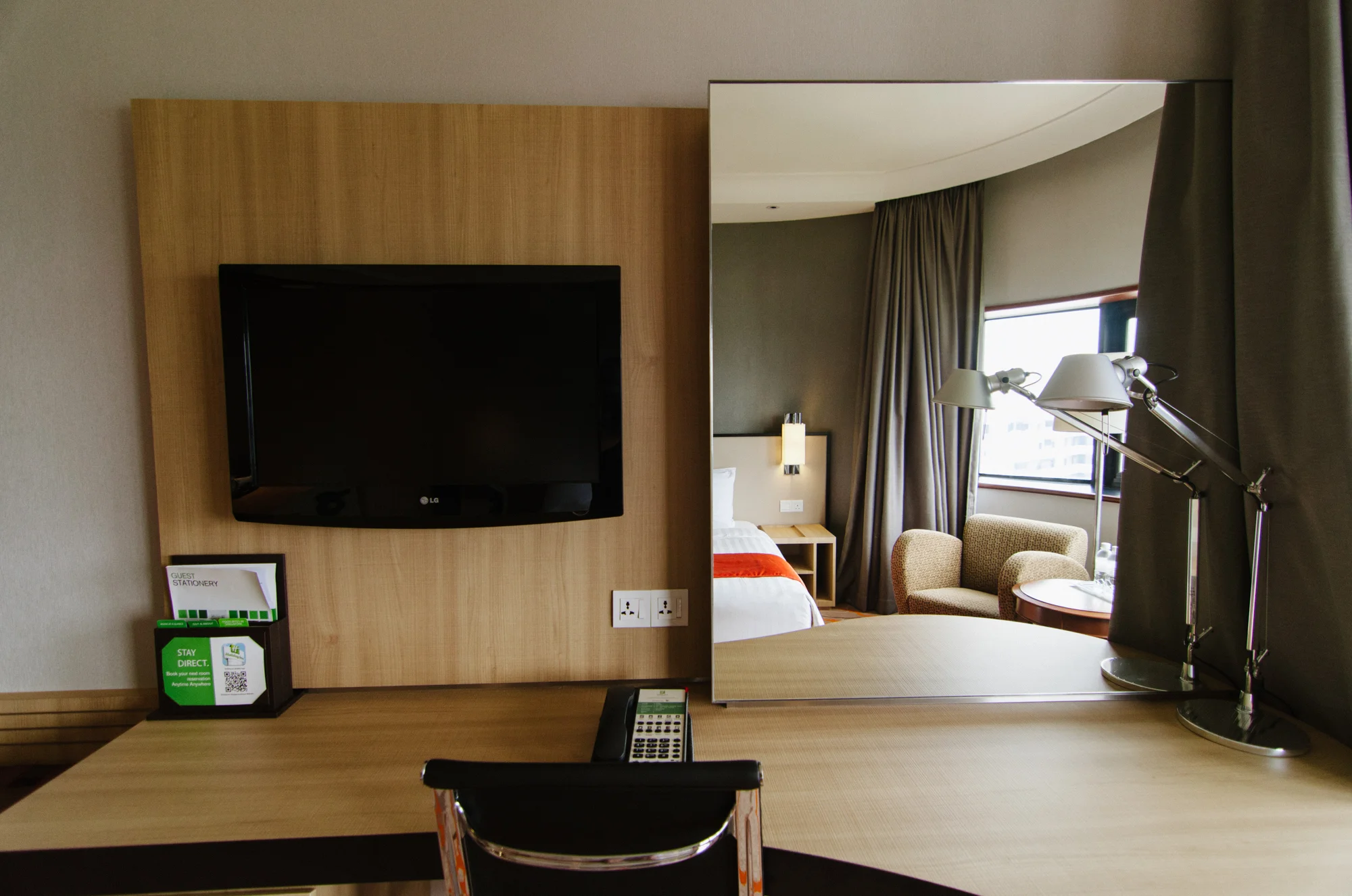 You also get a much bigger working desk with the refurbished rooms here at Holiday Inn Singapore Atrium. No more fingerprint-trapping glass table in your room - you now have a large wooden table with a flexible desk lamp to get your work done. If you are here for leisure, there's a healthy range of cable channels that will entertain you before you make your way down to Robertson Quay (if you are fancier) or the Zion Road Food Centre for some delicious local cuisine.