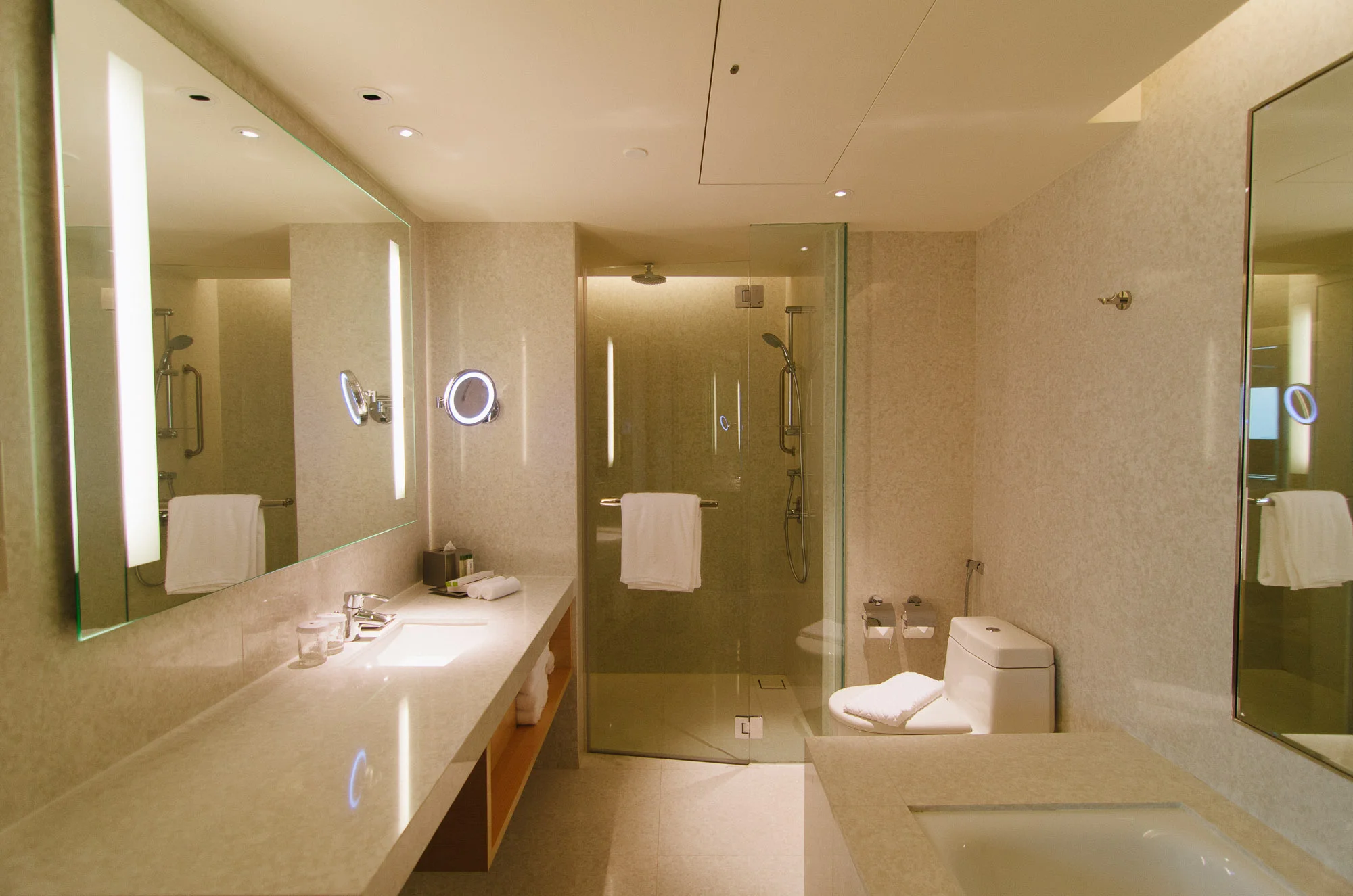 The beautifully designed bathroom consists of a standalone bathtub as well as a walk-in rain shower. I personally loved the design of the bathroom since it's easy to maintain and aesthetically pleasing with clean design lines.