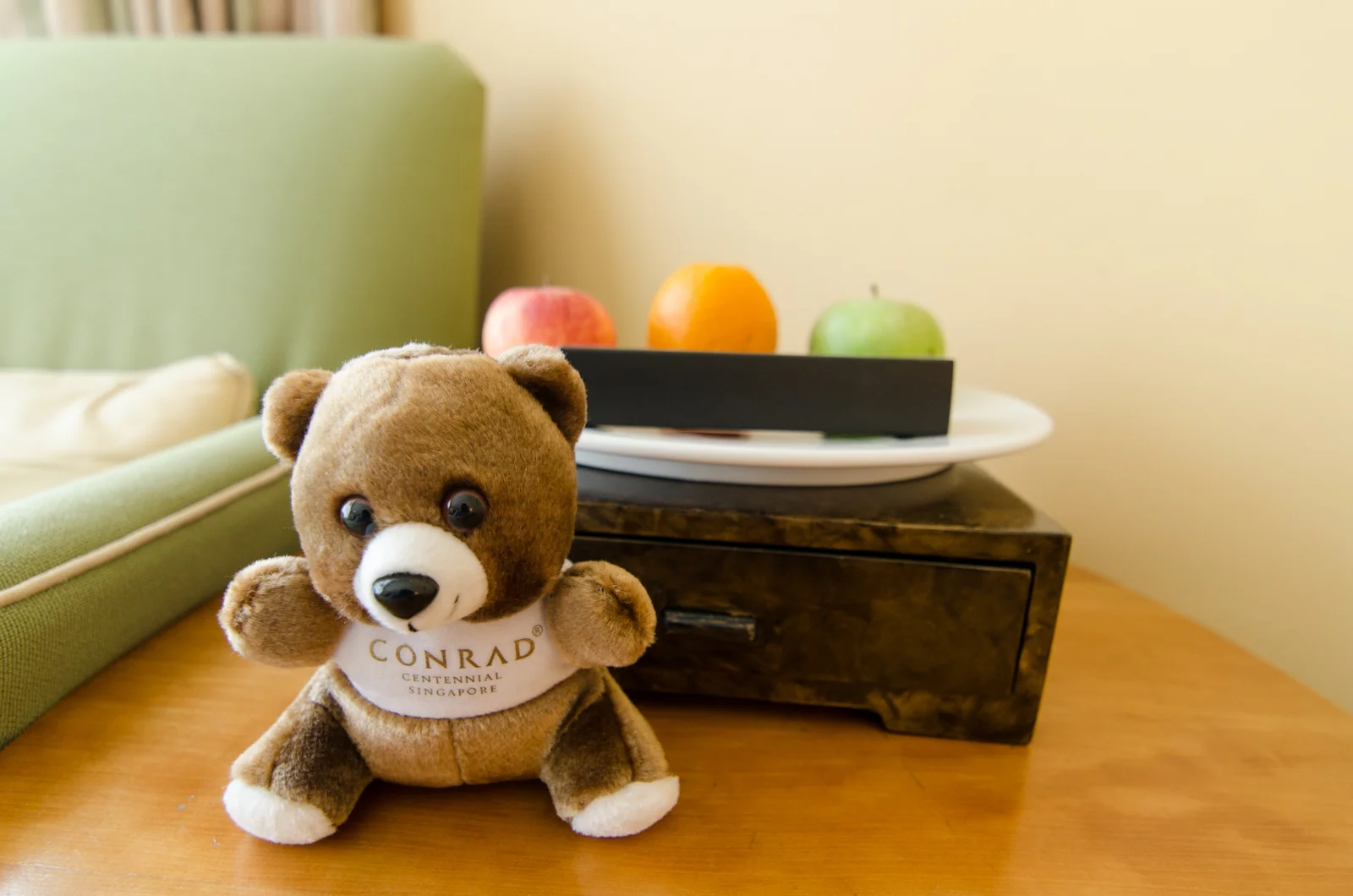 Unique stuffed toys are provided complimentary to hotel guests at all Conrad hotels around the world - I got a toy monkey previously at Conrad Bali. A fruit platter and a box of pralines were found behind the stuffed animal with various cutlery in the drawer underneath it. The thing about Conrad Centennial Singapore is that there are so many drawers located around the room that it makes me question the necessity of it all.