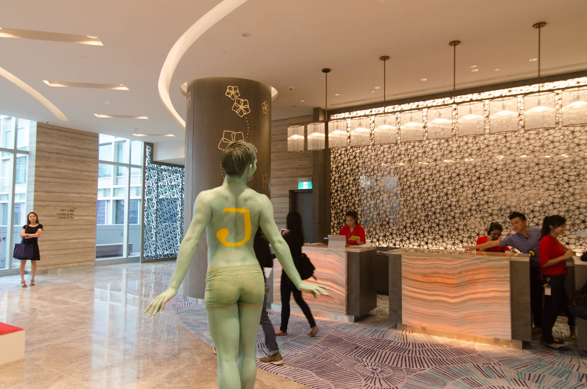 The check-in area is relaxed and contemporary. Unlike some hotels in the area with a rather rigid and predictable check-in area, Hotel Jen Orchardgateway offers a huge space (and great views) for you to wait patiently in line. I have to warn you though, the man clad in turquoise skin and only a tight pair of trunks will not be there permanently (he's really just there for the media tour) so don't get overly excited. What you should get excited over instead, is the quality of accommodation you are getting and the range of impressive facilities that this property has!