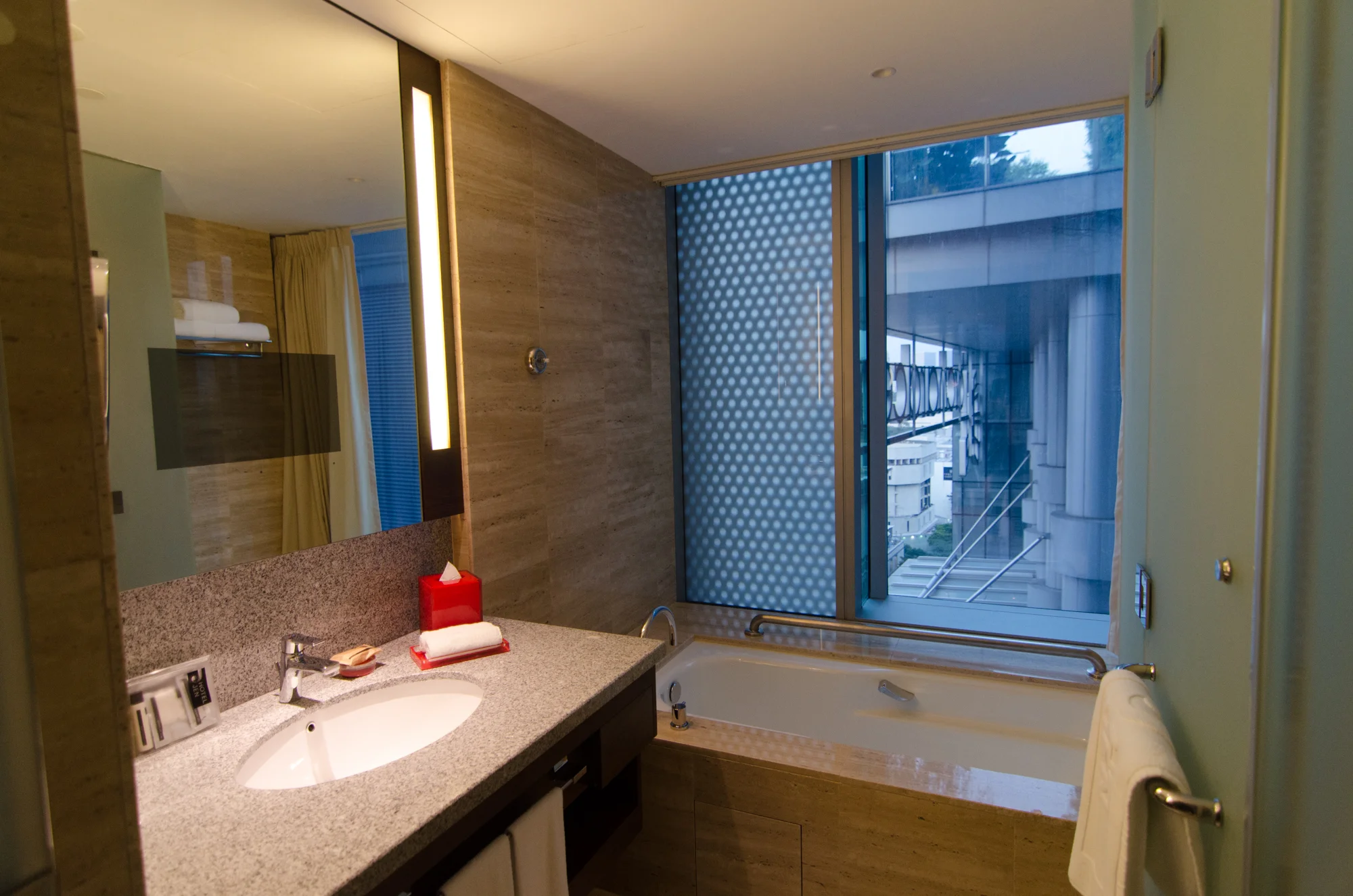 The Premier Panorama room comes with a separate bathtub (as mentioned before) and this room that I visited overlooks the outdoor terrace of the all-day restaurant, Makan @ Jen. If I am not mistaken, there's also one of those vanishing mirror LCDs that you see on TV in this bathroom (they are real!).