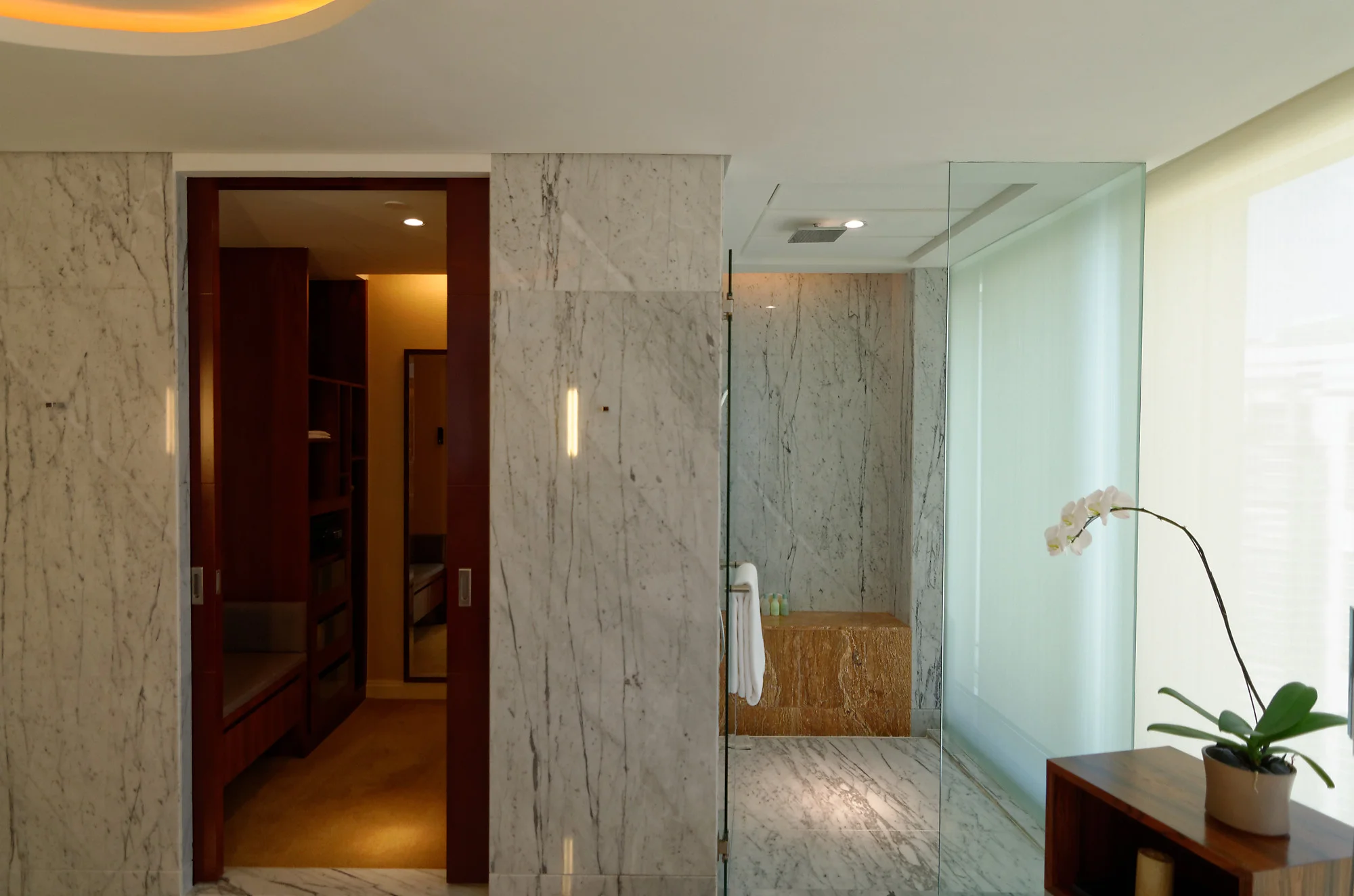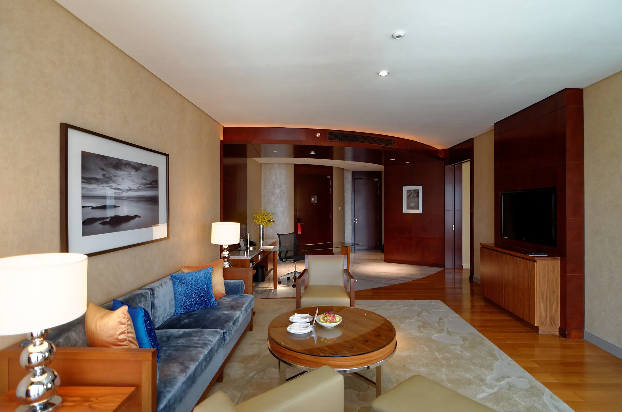 The Grand Suite (which are all corner rooms) comes with 105 sqm of beautifully and carefully-appointed living space (do note that you have to pay a little extra for the view of the Twin Towers). Upon entering your suite, you will find a powder room, work desk and a massive living area. With a harmonious combination of white marble and dark wooden floors, the Grand Suites exude a luxurious charm which will certainly set your mood right for your vacation.
