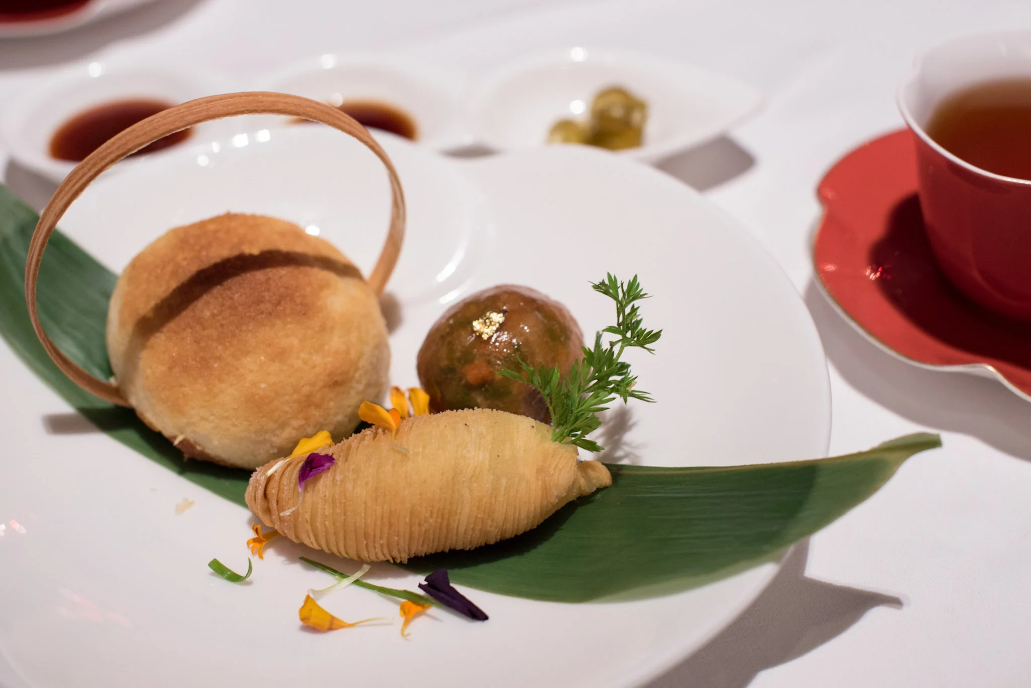 Baked Crispy Barbecued Pork Bun, Steamed Boletus Aereus Dumpling, Deep-Fried Shredded Turnip Pastry with Foie Gras