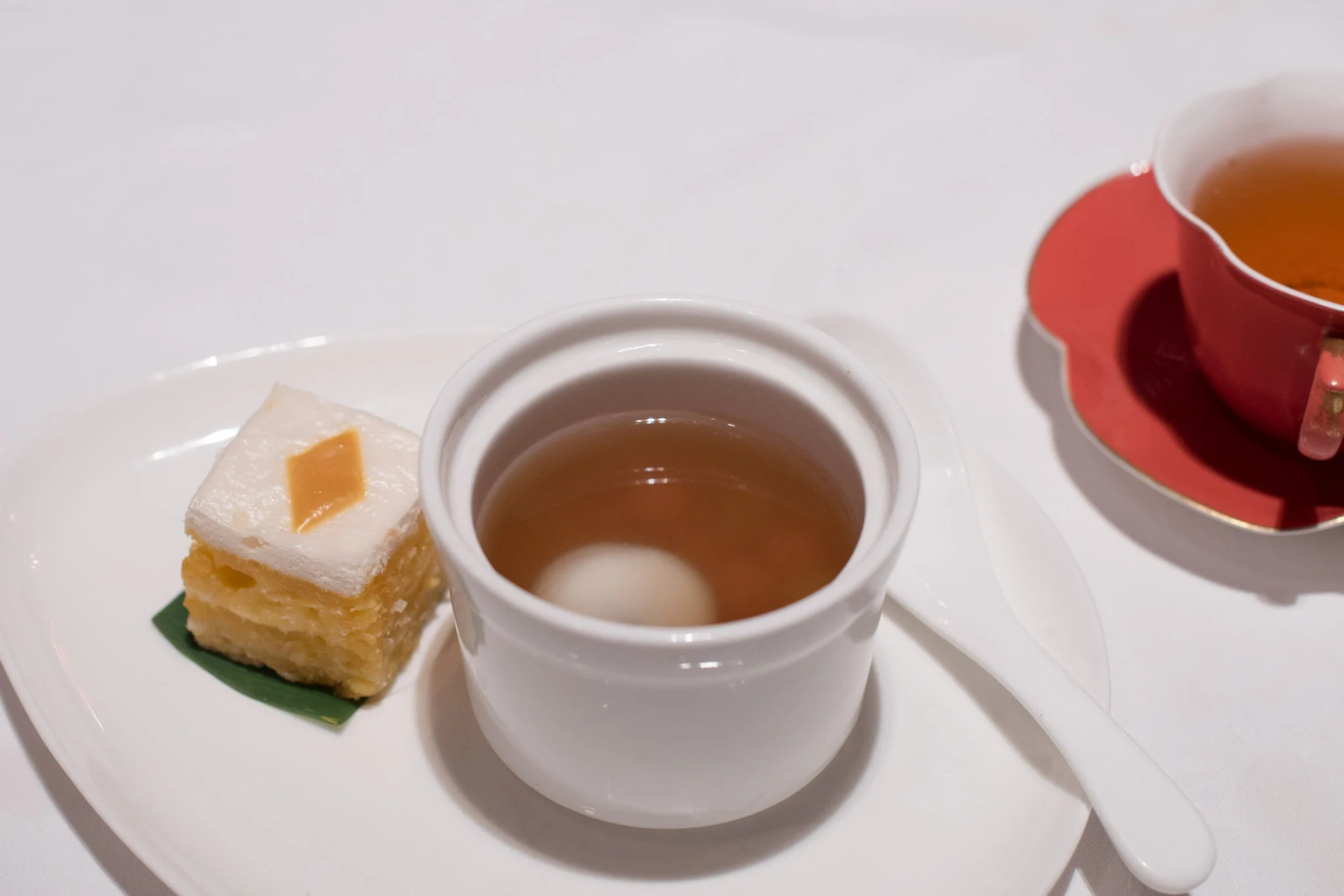 For dessert, a medley of Steamed Layer Cake, Coconut Combination with Ginger Tea and Glutinous Rice Ball were served. It is not uncommon to find the hairy crab dishes being paired with hot Ginger Tea. The Chinese believe that the cold nature of the crabs have to be paired with something of a "heaty" nature in order to achieve balance.