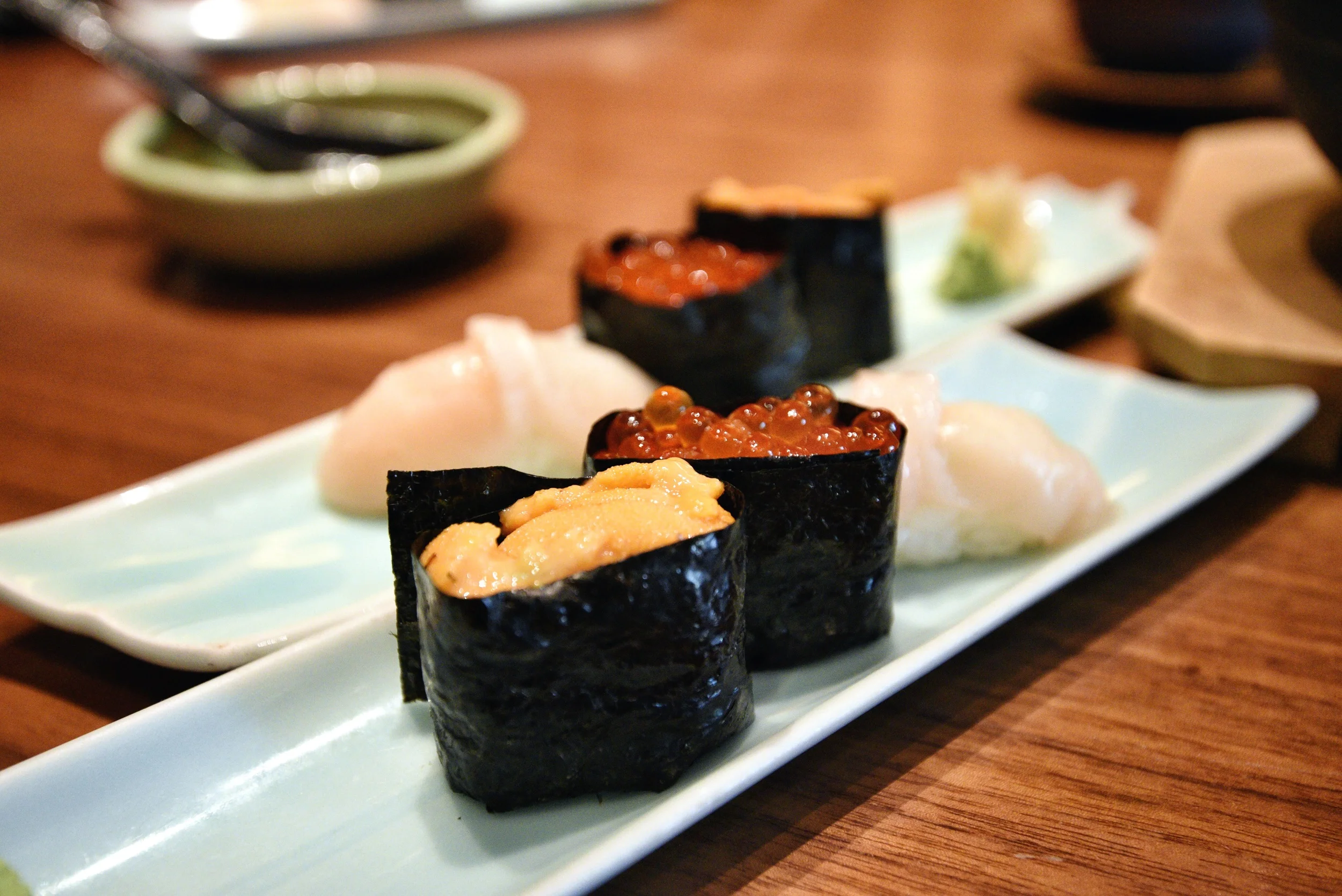 The three piece sushi came with Uni, Ikura and Hotate with the former being my favourite. The Uni (Sea Urchin) was fresh and had a creamy, almost custard-like texture that is good indication of the ingredient's freshness.