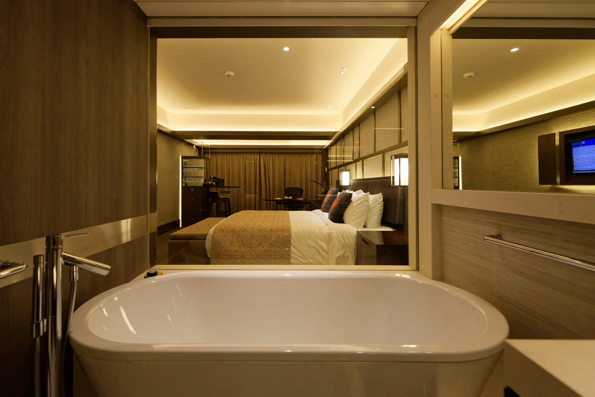 The bathroom of the Harbour Studio comes with a soaking tub and it is also strategically placed so that you can enjoy watching your favourite shows on TV while you unwind. Integrated speakers in the bathroom will also make sure that you will be able to hear everything you see. In case you need some privacy, lower the blinds with the controls along the wall and transform the bathroom into your little private haven.