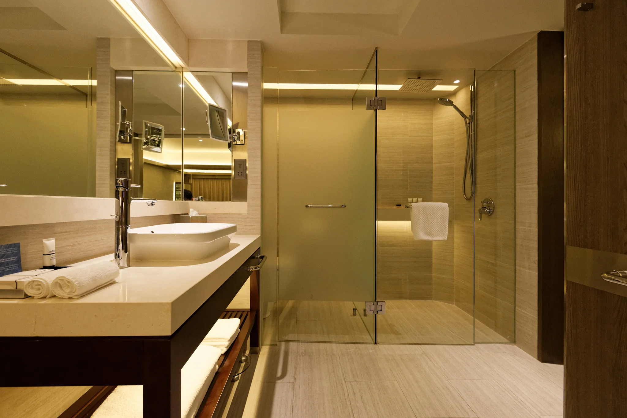 I really like the contemporary design of the bathroom. Not only does it look great with the ingenious use of lights (especially at night and you will see why when you stay in a Harbour Suite), it is also really practical.