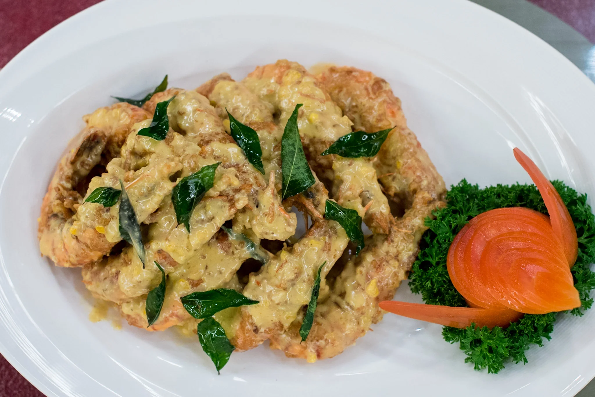 Stir-fried Jumbo Tiger Prawn in Salted Egg Yolk Sauce