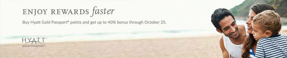Hyatt sells these Gold Passport points at USD 24 per 1,000 of them and during this promotion period receive up to 40% bonus points when you purchase a minimum number of points. Do note that you can only purchase up to 55,000 Hyatt Gold Passport Points per year: