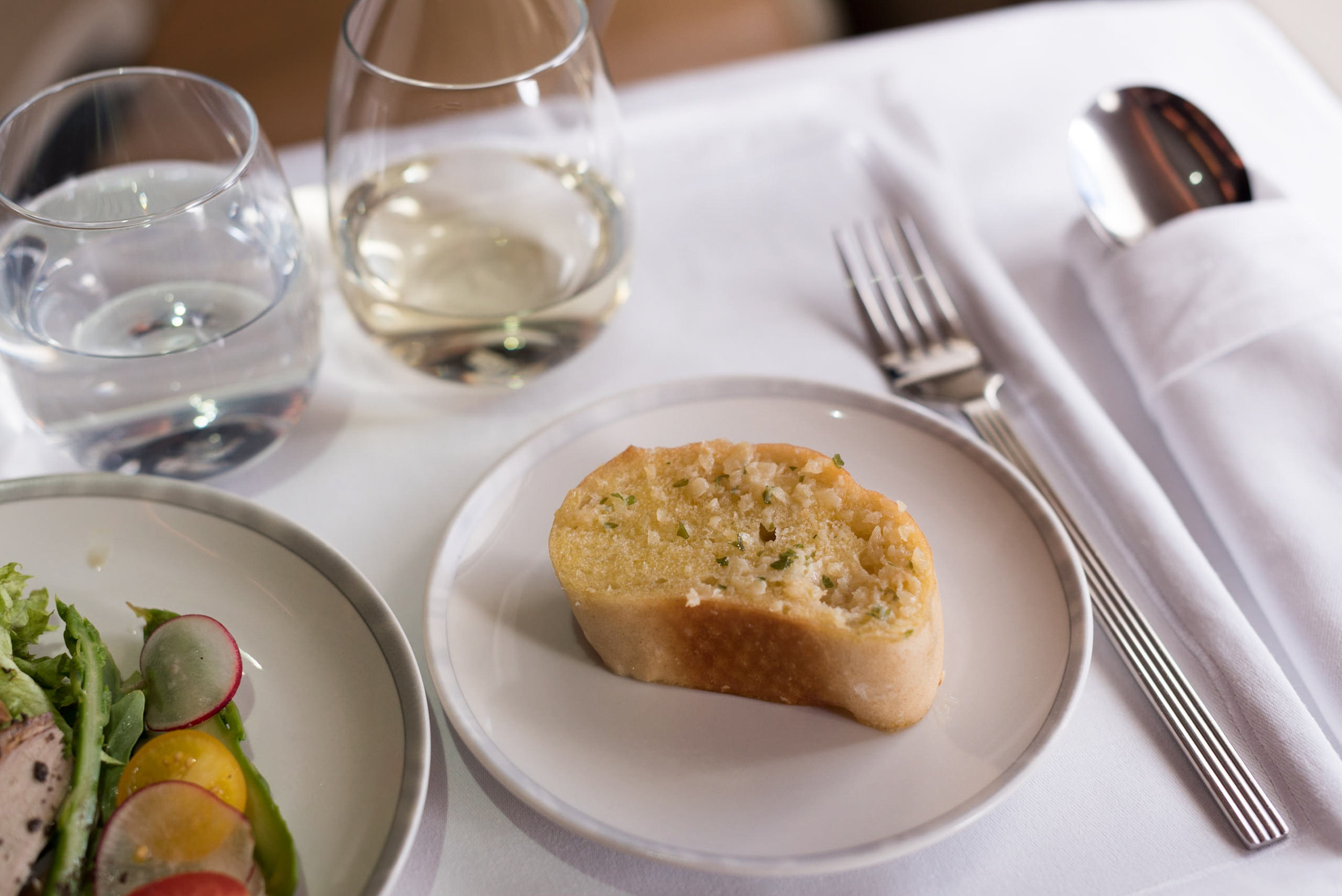 As the air stewardess went around the Business Cabin with the bread basket, I opted for the famous Garlic Bread (of course!). At this stage I noticed the stark difference between traveling in the Business mini-cabin versus the main Business cabin - the air stewardess will probably only address you as a generic "Sir" for the rest of your flight. I know it isn't Suites and I should not expect the person serving me to know my last name but I have gotten better treatment in the mini-cabin. This is simply an observation and I guess you can probably treat it as a tip but it is not a complain of any kind. From my understanding, passengers in Business Class should be greeted by their last name at least once in the flight (usually when they show you to your seat).