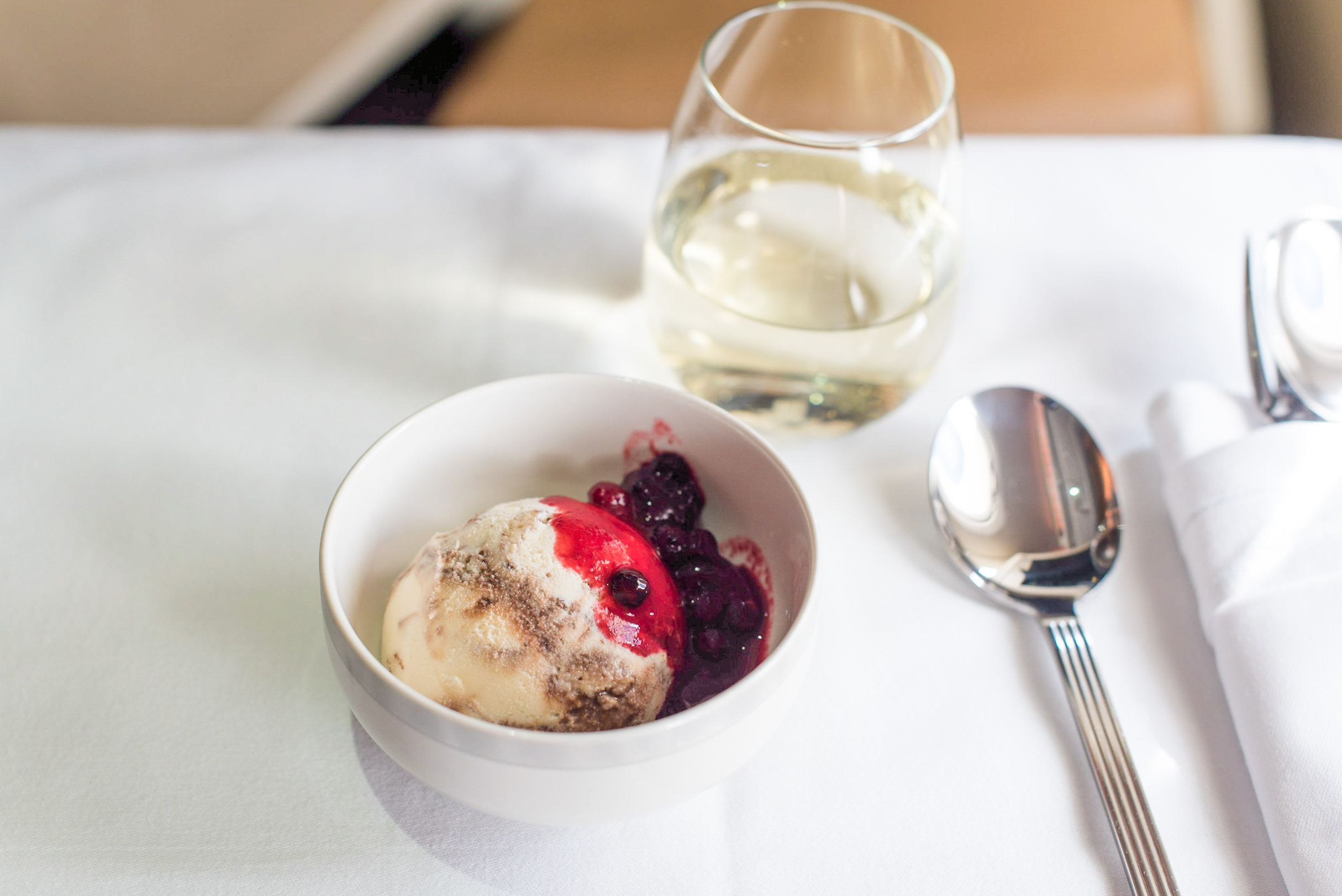 For dessert, a mighty scoop of Haagen Dazs Tiramisu Ice Cream was served with some raspberry coulis and I opted to have a glass of white wine to go with it - Strawberry Crumble Flan was also served as an alternative. Honestly, I don't even like desserts but having a scoop of ice cream on-board the plane is just such a fascinating experience (also kudos to Singapore Airlines for having the tastiest Salt Pistachio Praline Ice Cream!).