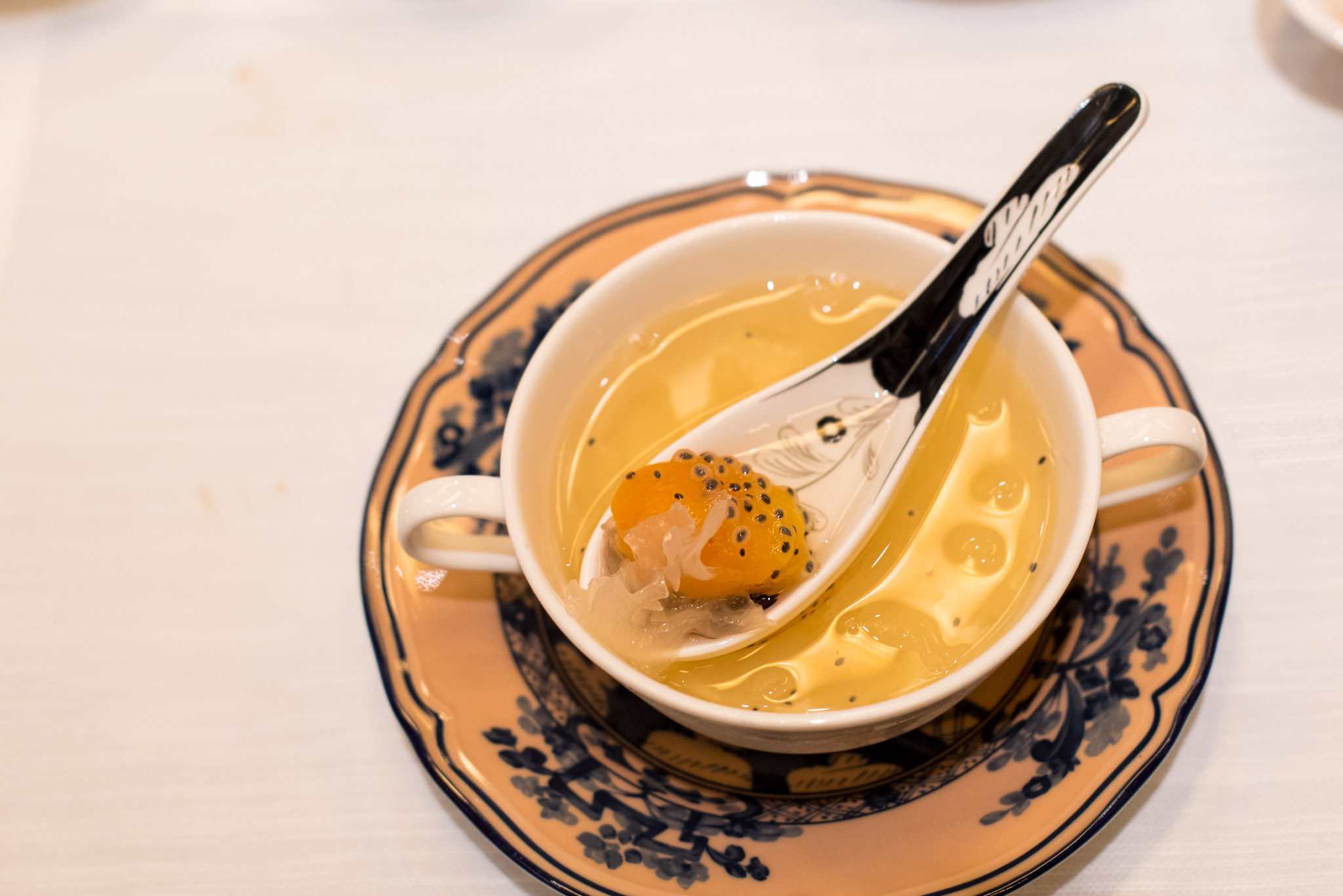 Finally, for desserts, this relatively simple but refreshing Chilled Apricot, Fungus and Basil Seeds. In addition to the reality of the dessert (which is chilled), White Fungus is believed to be "cooling" in Chinese medicine and cuisine. Summer Pavilion at The Ritz-Carlton, Millenia Singapore has once again outdone itself by showcasing a good mix of culinary skills and modern presentation!