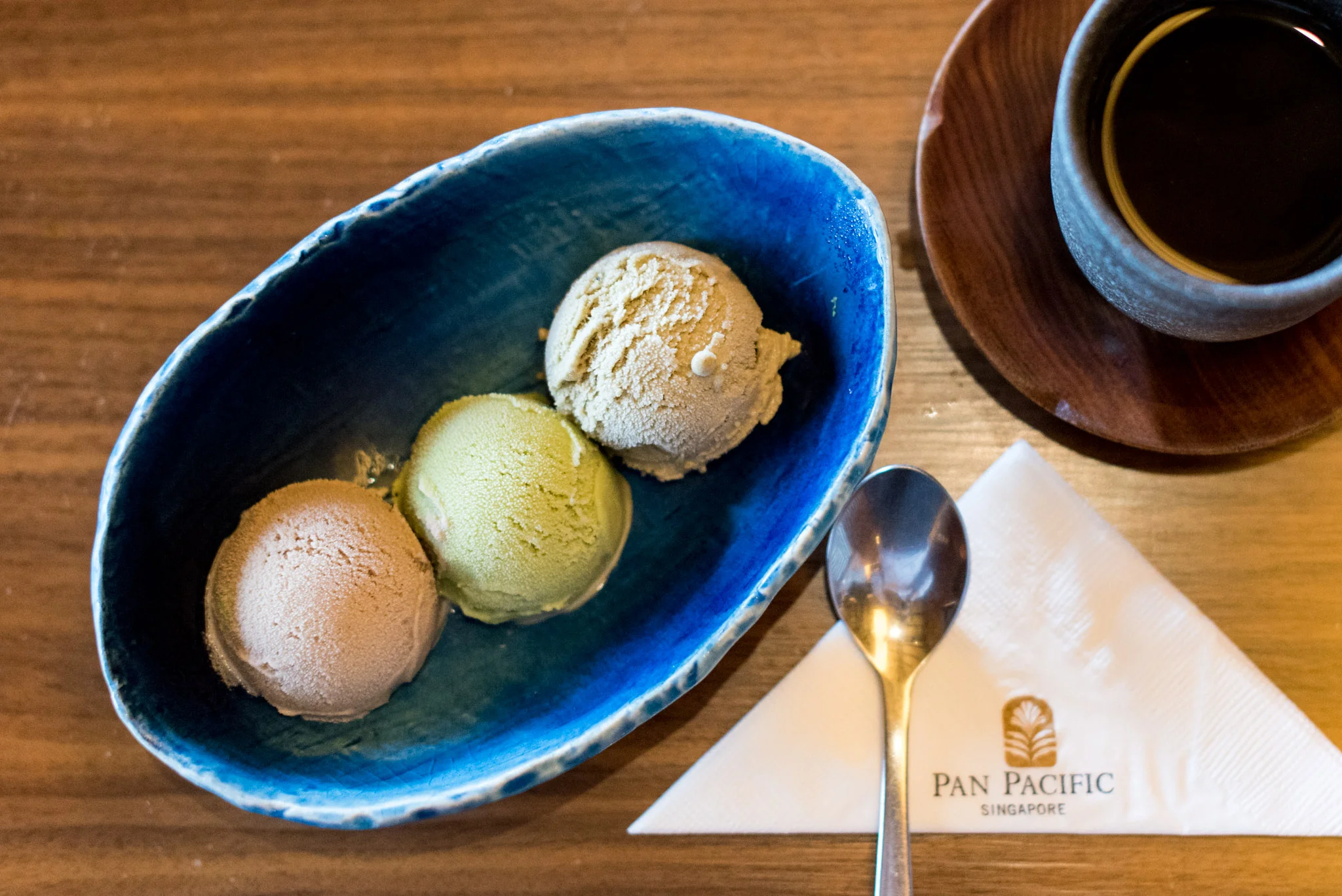 To end off the perfect meal, three different types of ice cream was served - Mugicha (Roasted Barley Tea), Sencha (Green Tea) and Hojicha (Roasted Green Tea). My personal favourites are the Mugicha and Hojicha. While the Sencha was good, I thought that the other two flavours were really interesting. In fact, the Mugicha one really reminded me of fresh coffee. Set Menus from the Gastronomic Journey of Shikoku at Keyaki (Pan Pacific Singapore) starts from S$170++.