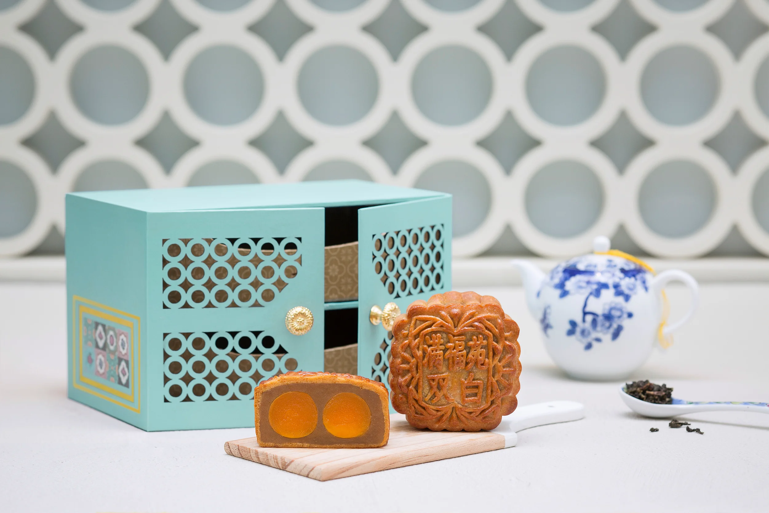 If you prefer the traditional mooncakes more, you will not go wrong with the selection from Man Fu Yuan. The Baked Mooncake with Double Yolks and White Lotus Paste (S$68 for a box of four) is always a crowd-favourite but if you are looking for different varietals, check out the Baked Mooncake with Assorted Nuts (S$62 for a box of four), the Baked Maple Osmanthus-Glazed Shanghai Mooncake with Single Yolk (S$64 for a box of four) or time-honoured mooncakes with single or double yolks (including a low-sugar option!).