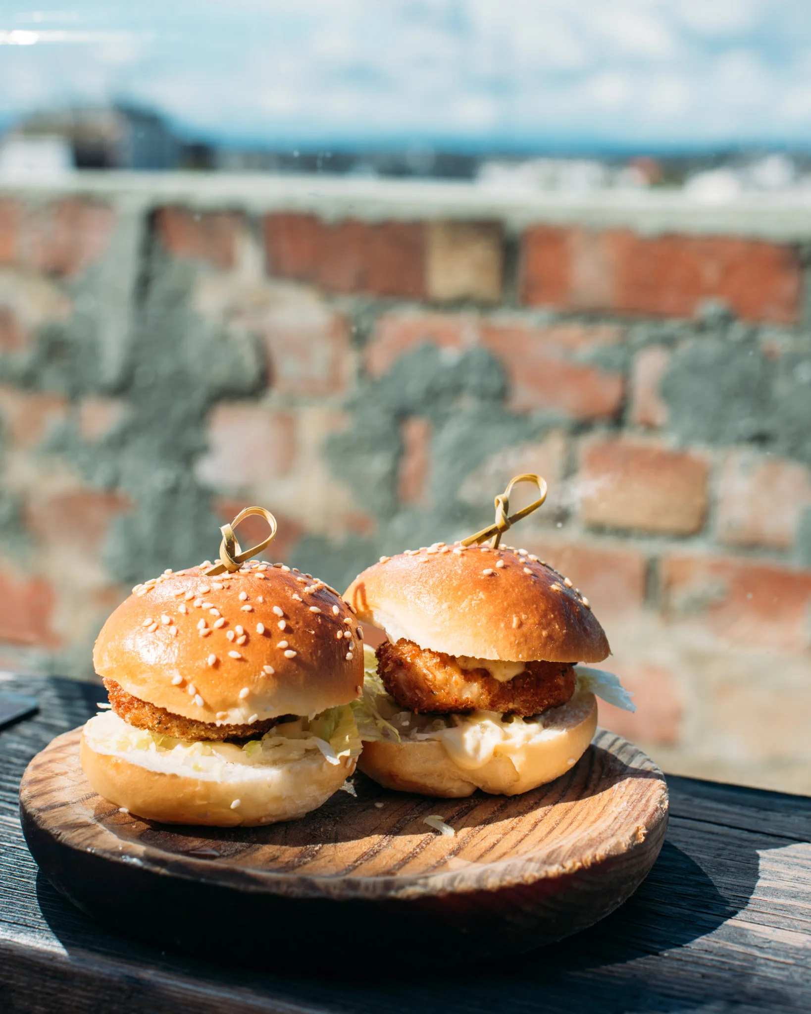 Confit Chicken Wing Sliders, Iceberg Lettuce, Mayo and Tabasco