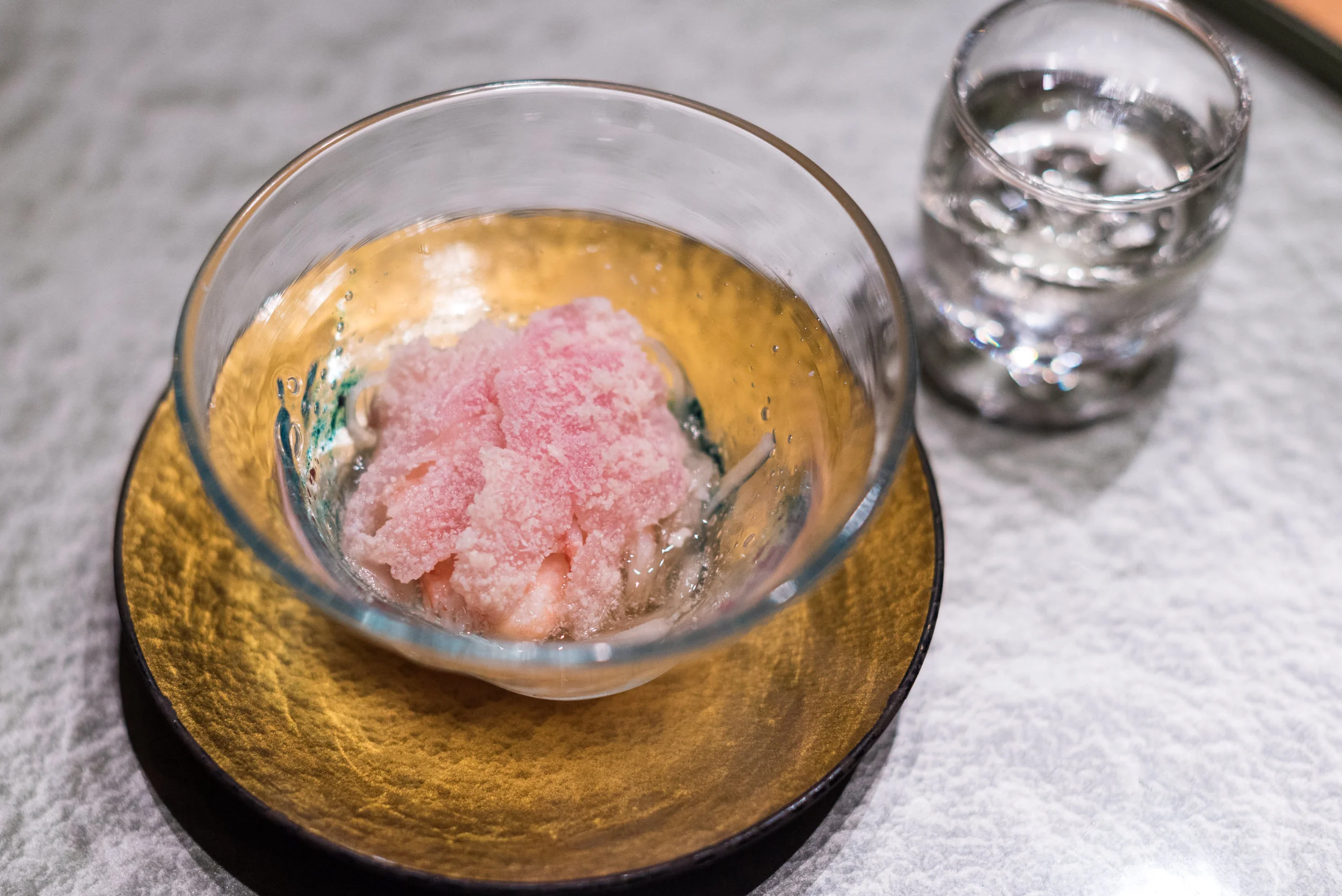 Known to showcase seasonal ingredients and the best produce, the fourth course of the menu was Chef Kudo's Seasonal Inspiration which included the following ingredients: Grilled Amadai, Poached Asparagus rolled with U.S. Beef, Taro with Miso, Green Beans and Handmade Green Pea Tofu. The beef was my absolute favourite and this is because of a few things - most of the dishes served in the menu lean towards the lighter side of flavours so that explosive taste from the beef (which melts in your mouth) is something to behold. The amadai fish (known as 'guji' in Kyoto) is also a highly-prized ingredient that is commonly used in Kyoto and it is lightly grilled to showcase its unique flavours.