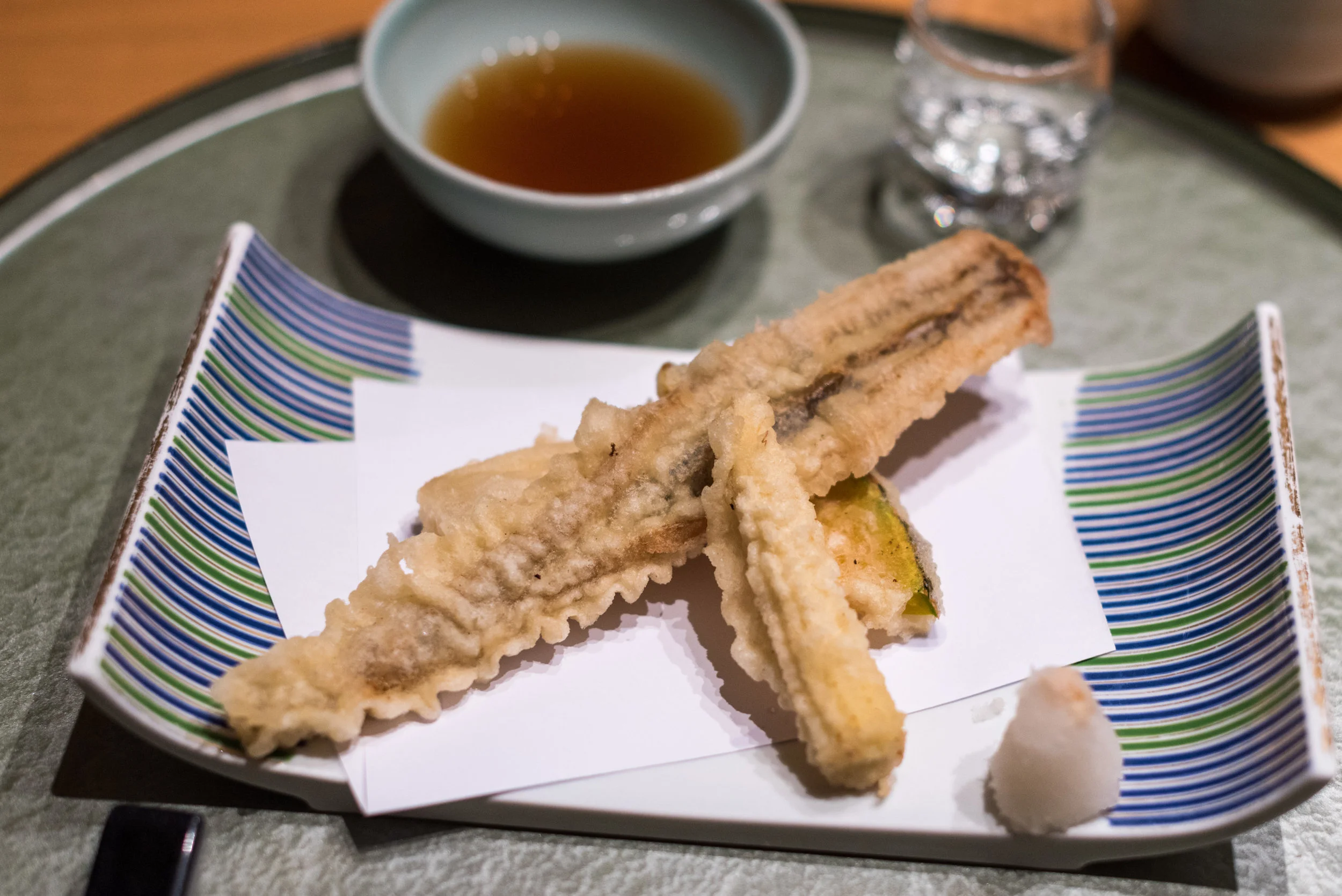 The sea eel was chosen to showcase the tempura component of the dish - it was also served with some seasonal vegetables by the side along with a tempura dipping sauce which is traditionally made from mirin, soy sauce and the chef's special dashi stock (which is probably the most important component).