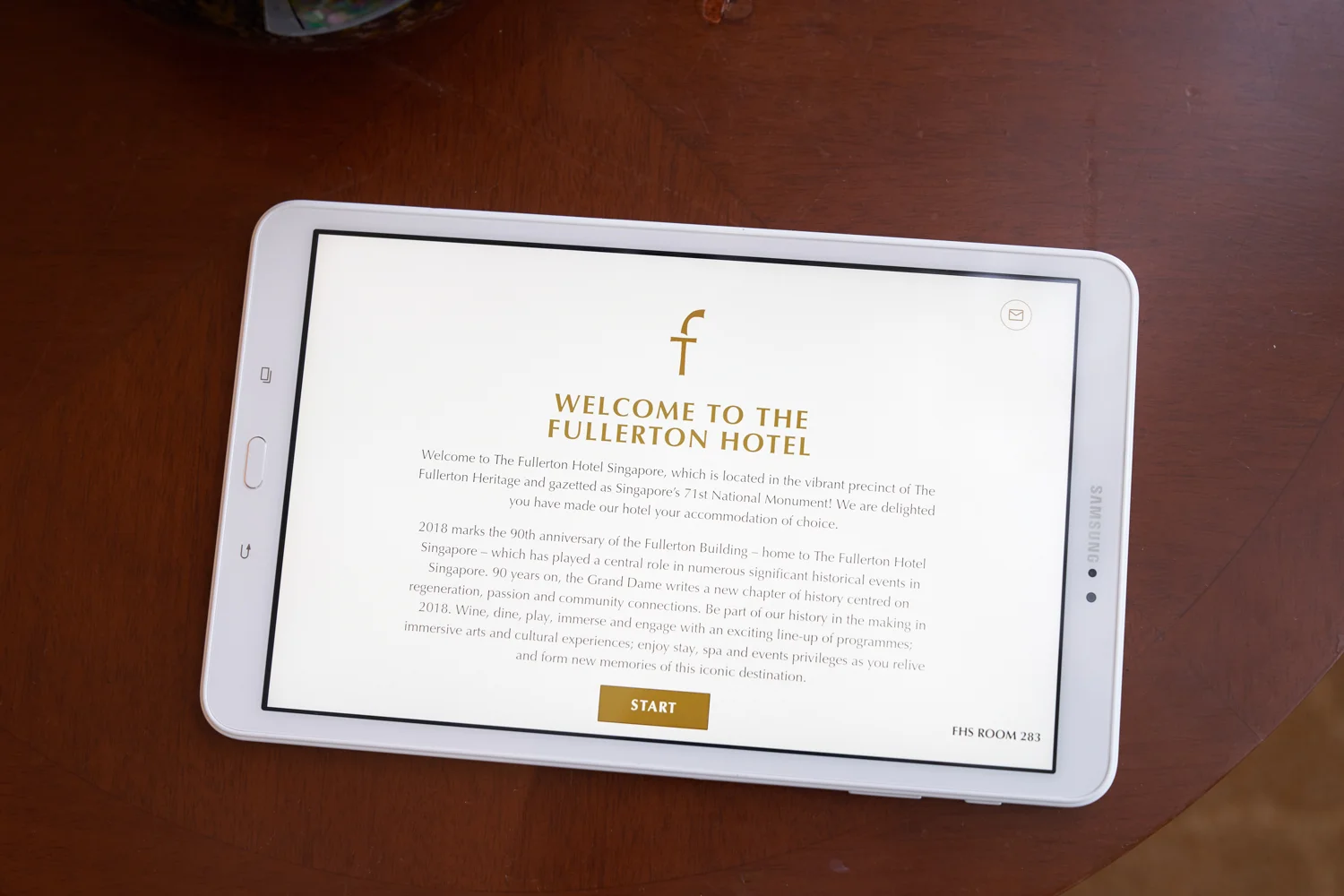 As part of the 'Smart Fullerton' experience, new digital touch points like an in-room e-Compendium tablet (provided by Tapendium) are set to reinvent the hospitality experience for the modern traveller. The Fullerton Hotel as well as The Fullerton Bay Hotel Singapore have managed to digitalised the traditional compendium into a tablet across all 500 rooms and suites.