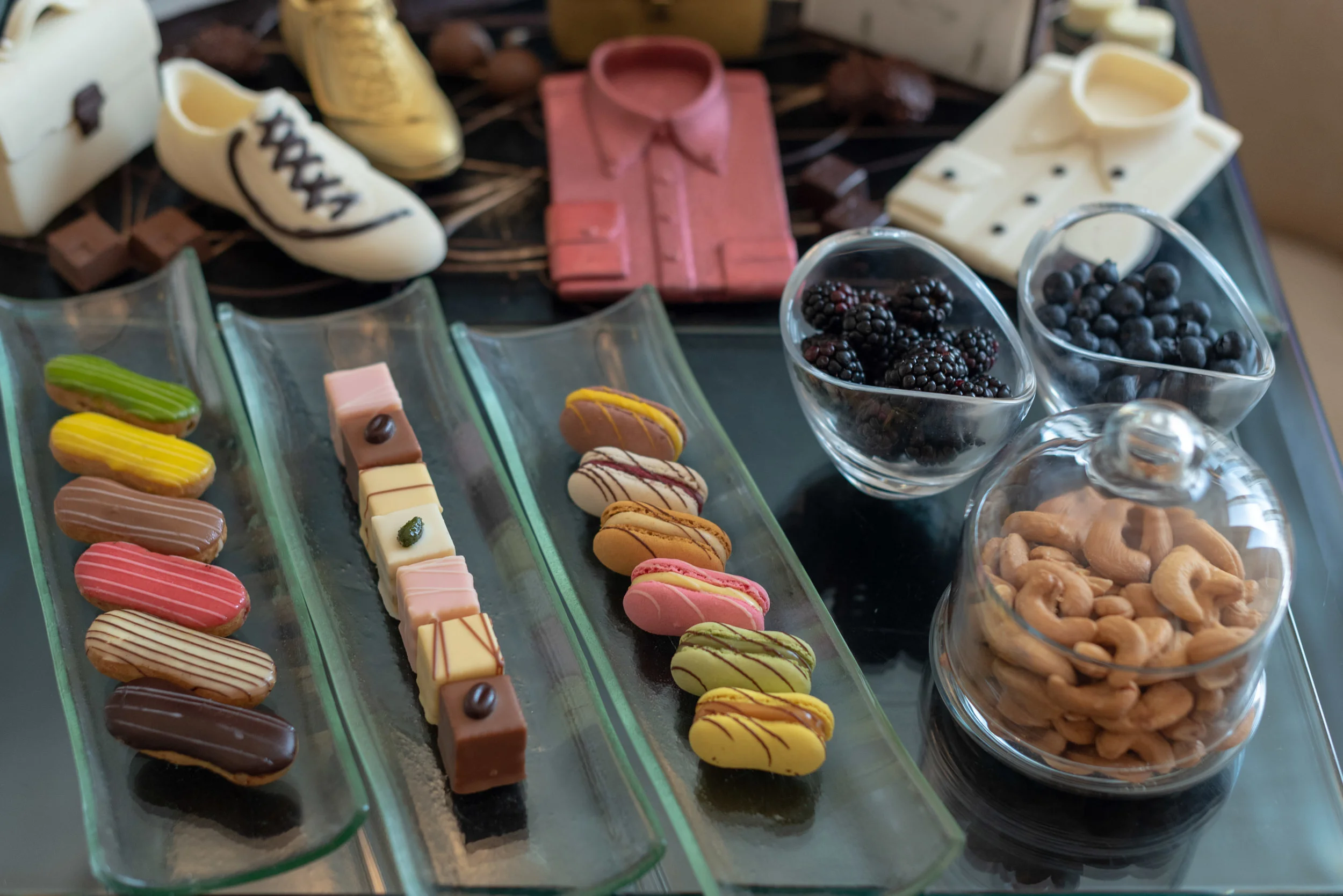 As part of my welcome amenity, I received a whole plethora of goodies that range from sweet snacks like eclairs to savoury ones like roasted cashew nuts. In fact, there was even a good amount of blackberries as well as blueberries here. Since I was staying alone for only one night, these snacks were left untouched unfortunately but those cashews were delicious! Oh and in the event that you are wondering whether those 'bags' and 'shoes' are edible behind, they are fashioned out of chocolate (even though I did not eat them).