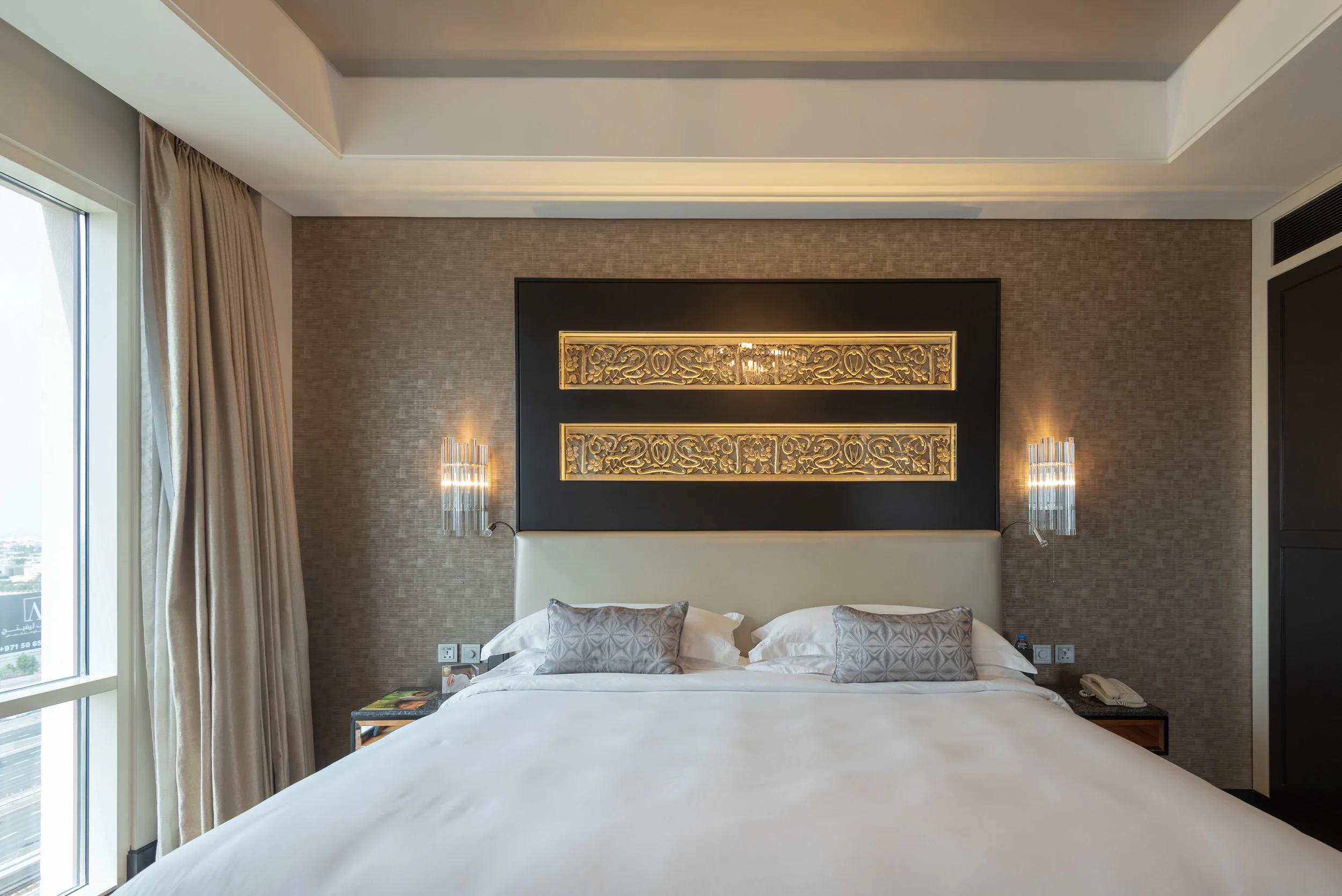 There are two sliding doors that lead to the bedroom and the Corner Suites here in Kempinski Hotel Mall of the Emirates feature either a king or twin bed configuration. The bedroom (which is my favourite area in the whole suite) is beautiful and it was a balanced combination of European opulence and Arabic design. It enjoys plenty of daylight with its floor-to-ceiling windows (which look out of the Burj Al Arab), and there is even a 46-inch TV here in the bedroom for you to catch up on your favourite programs.