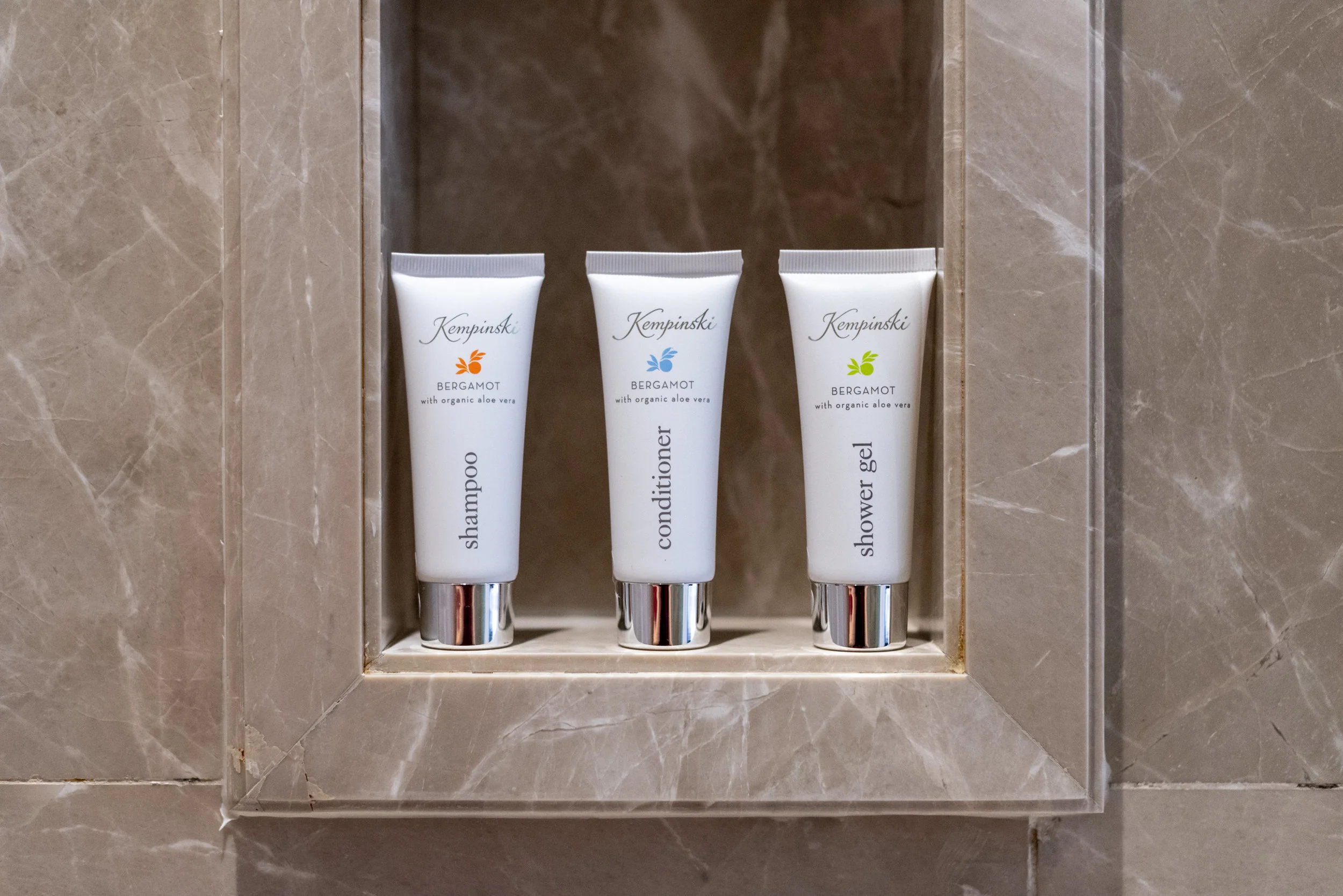 Consistent to most if not all Kempinski properties around the world, in-house Bergamot-scented bath amenities are provided. These specially-formulated bath amenities consist of organic aloe vera but I am personally not a fan of these since I have found the bergamot scent to be too faint (but perhaps that is what they are going for?).