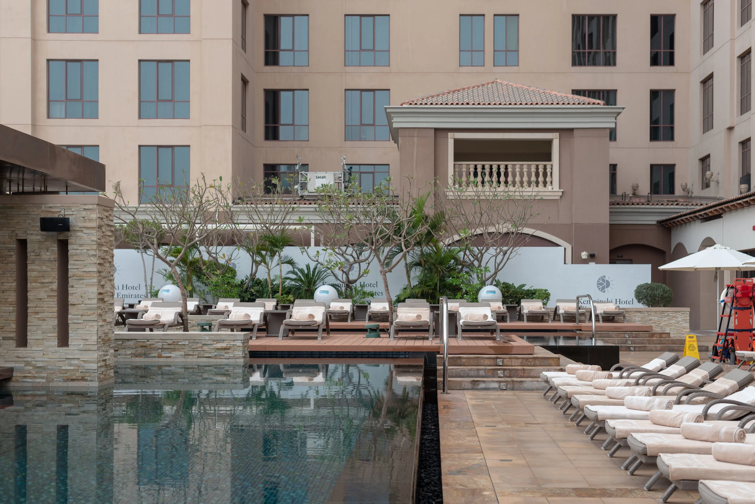 The Kempinski Hotel Mall of the Emirates has a beautiful outdoor swimming pool but some renovation works were going on during my visit so you can actually see some of the construction hoardings behind the other swimming pool in white. It was approximately 36 degree Celsius on the weekend that I visited in Dubai so a dip in the pool was a much-welcomed treat. In fact, it is not uncommon for temperatures to soar above 40 degree Celsius in the summer so make sure you pick a hotel with a nice swimming pool because trust me, you are going to need it.