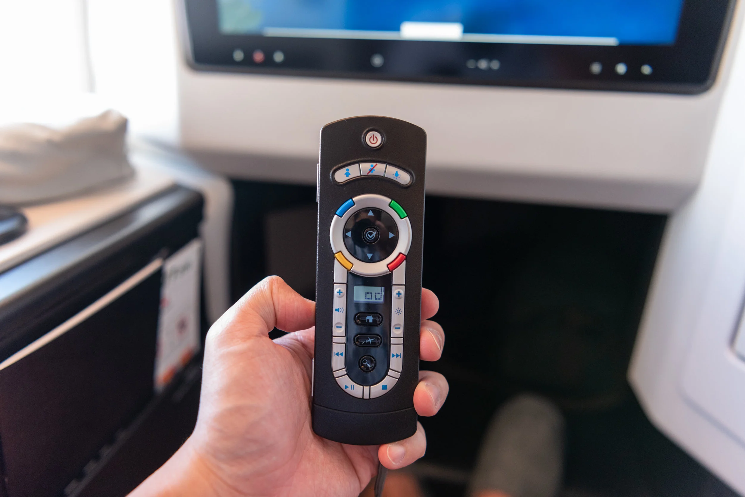 On the back of the IFE Remote is a keyboard which is only useful if you are planning on finding a particular movie or show on the IFE. If you are traveling with children and they would like to play some games, this is also where you will find the controls for the games - I did not try them out since I was not particularly excited to play chess, sudoku or tetris (amongst other games) in the air.