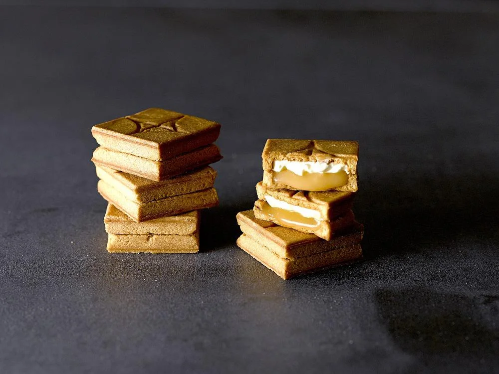 Passengers traveling in Business Class and First Class will be able to indulge in JAL's Original Chicken Curry that has been created by Hashimoto Restaurant, one-star restaurant in the 2018 Special Edition Michelin Guide for Kumamoto/Oita prefecture. Those in Business Class will also get to enjoy a brand new snack - the PRESS BUTTER SAND - at the self-service corner. This scrumptious cookie is filled with cream/caramel and is perfect for a mid-flight snack.