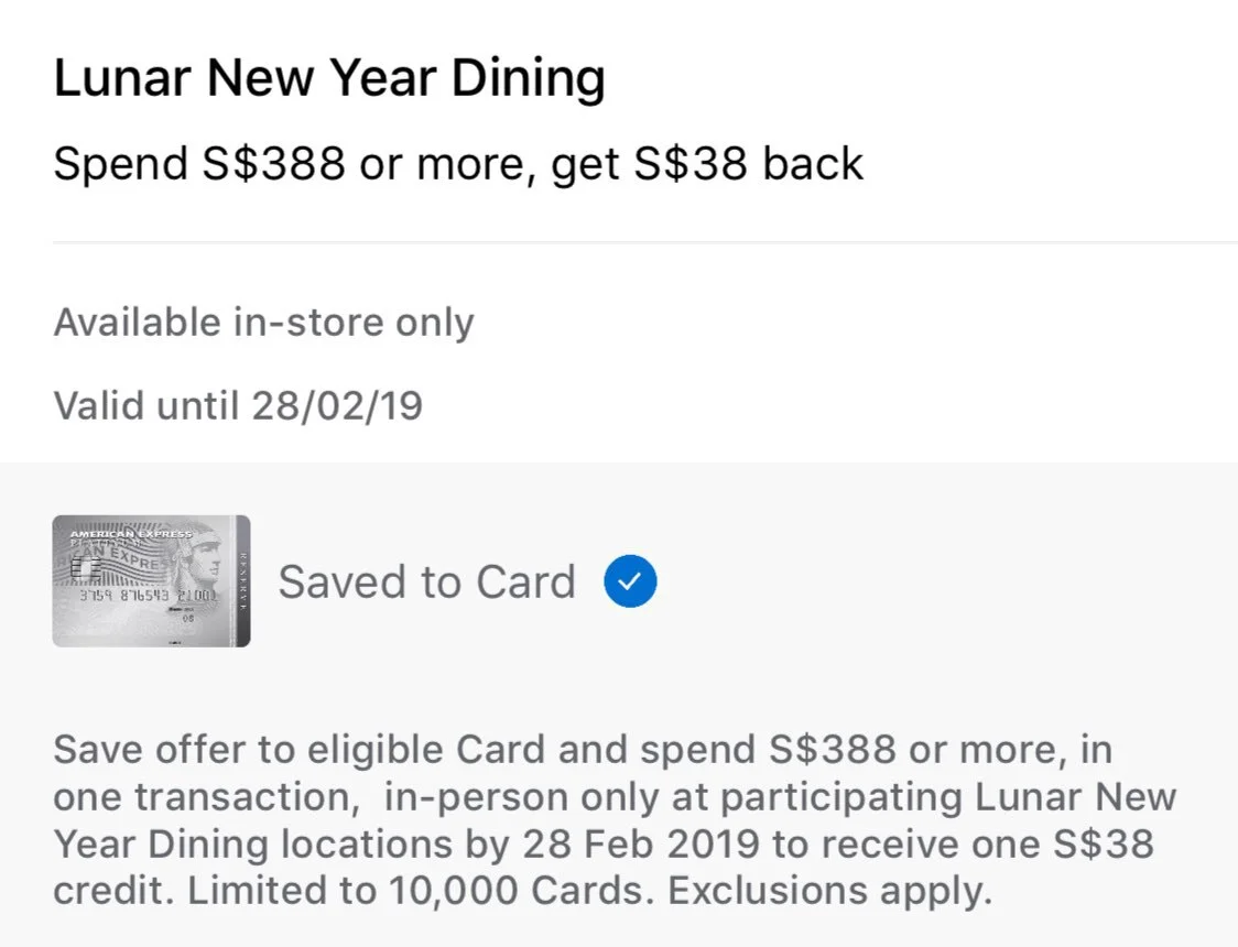Spend S$388 Get S$38 Statement Credit - American Express Lunar New Year Dining Offer 2019