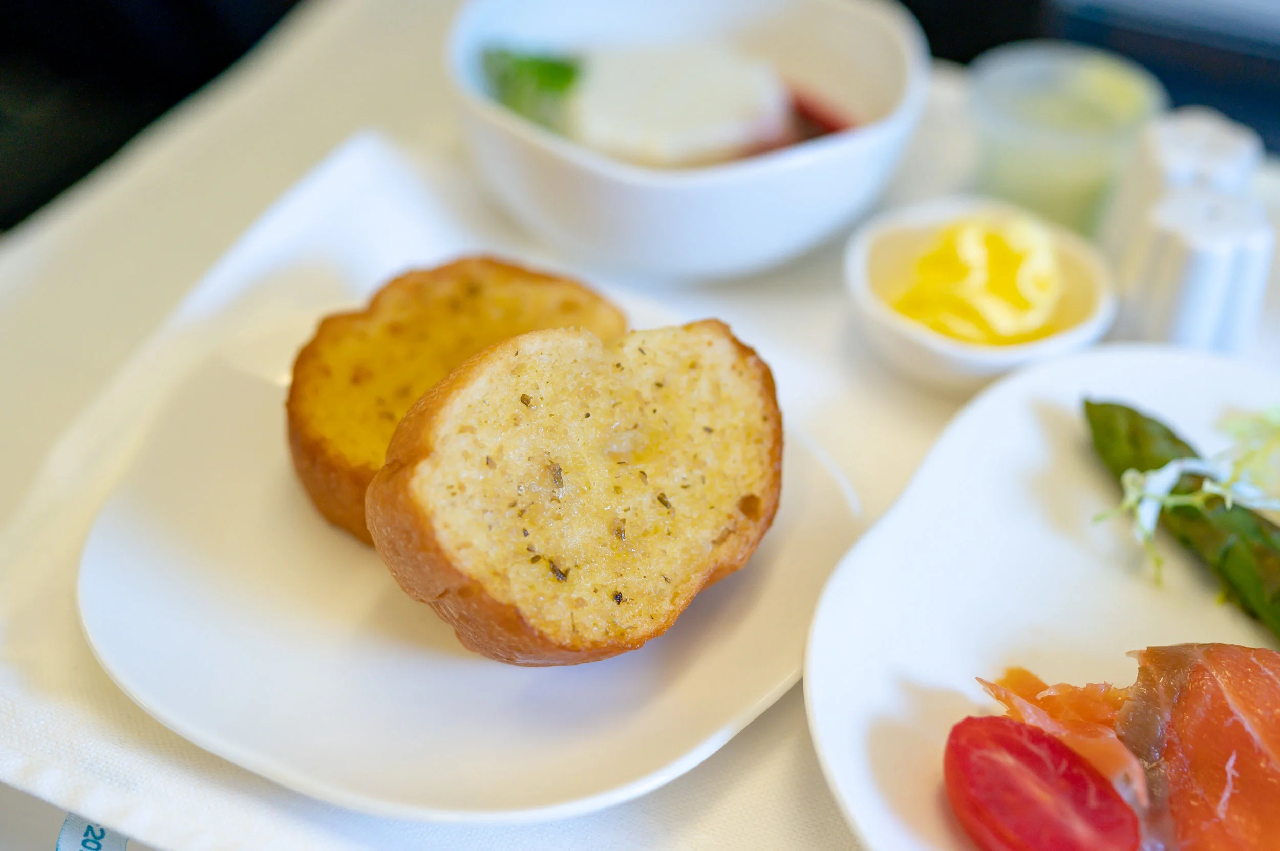 The garlic bread on Vietnam Airlines’ Business Class was actually quite good. It was not reheated very well on this flight sector but the taste is actually on par (or I dare say slightly better) with what Singapore Airlines serve. The cabin crew also offered refills (of the garlic bread but never my Champagne) which I politely declined.