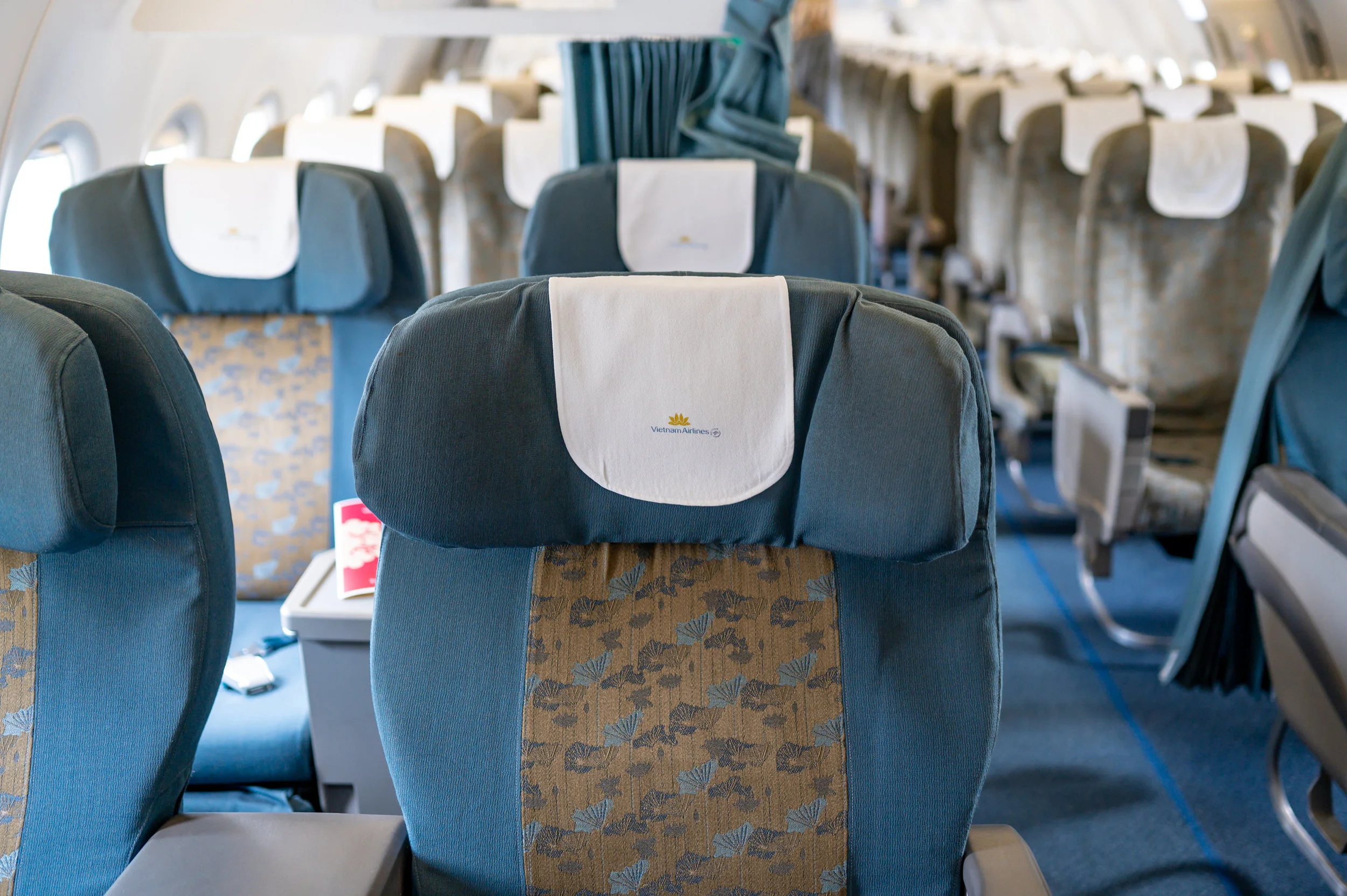 Unlike all my experiences with Singapore Airlines in Business Class, there were no cabin crew waiting at the entrance of the plane for me. In fact, when I got on the plane, one of the cabin crew was still on her mobile phone (even after she has seen me entering). I thought to myself that this occurrence was probably a momentary lapse and she quite possibly had something important to attend to on her phone but I was quickly convinced otherwise by the attitude of cabin crew on the plane (more on this later!). Now this is not the flagship Business Class product of Vietnam Airlines (which I have actually heard many good things about). Utilised mainly for regional and short-haul flights only, the A321 that Vietnam Airlines operate comes with 16 Business Class and 162 Economy Class seats. In comparison to Economy, the seats here in the pointy-end of the plane has 45” (instead of 32”) of seat pitch and it has 21” (instead of 18”) of seat width.