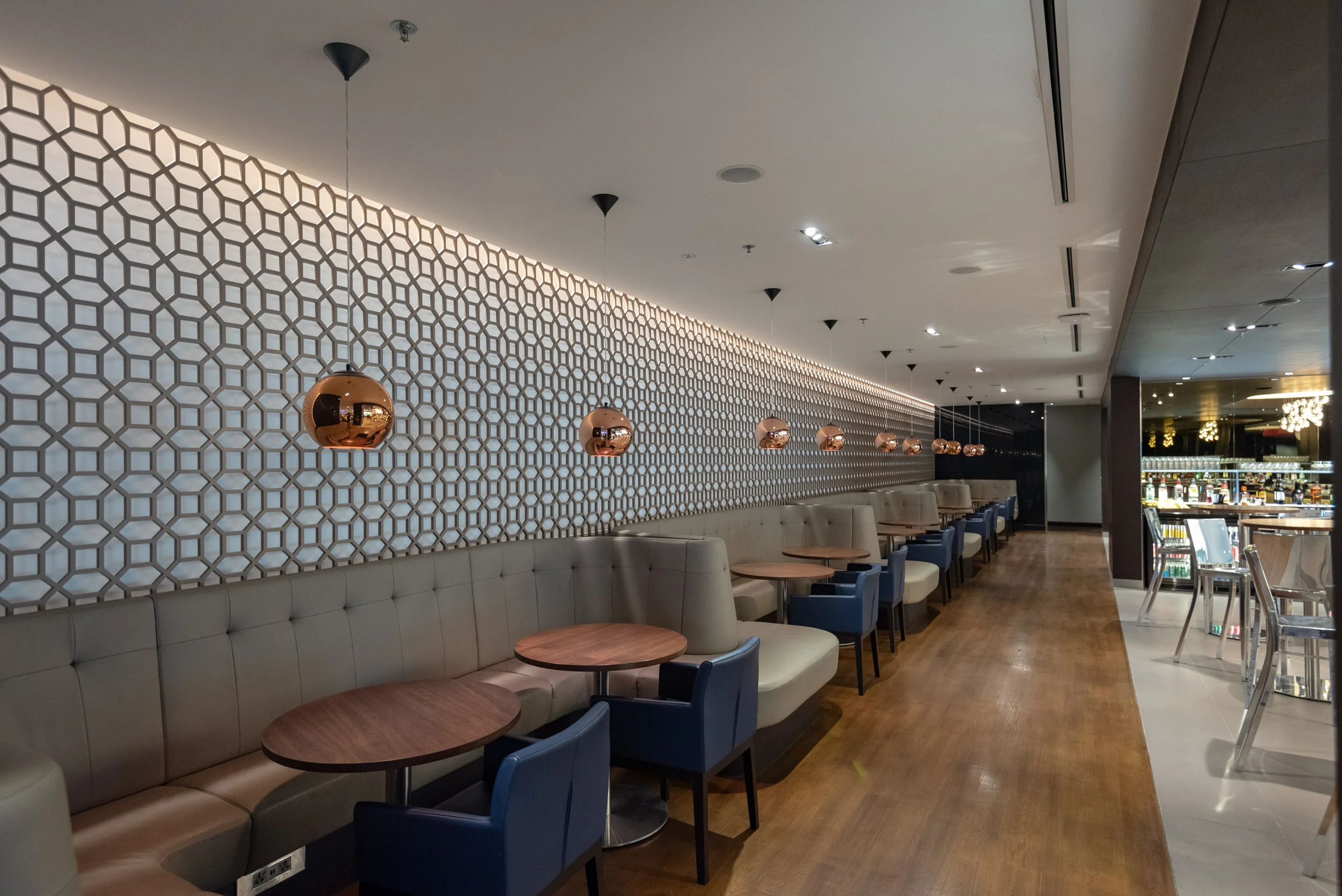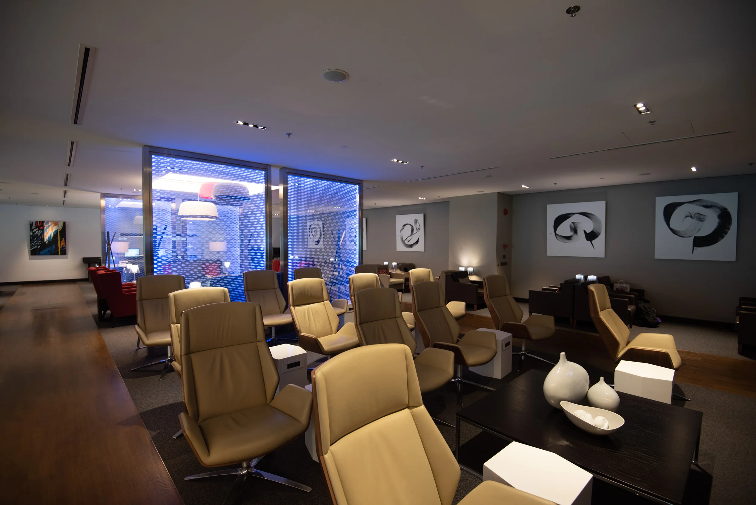 There are plenty of different seating areas throughout the lounge but the first thing that you will probably notice is the Concorde Bar out front which requires a secret pin to access. Now this private area is reserved for First Class passengers only and if you are indeed flying on the pointiest end of the plane, you will receive a little card with the pin number when entering the British Airways Lounge and Concorde Bar.