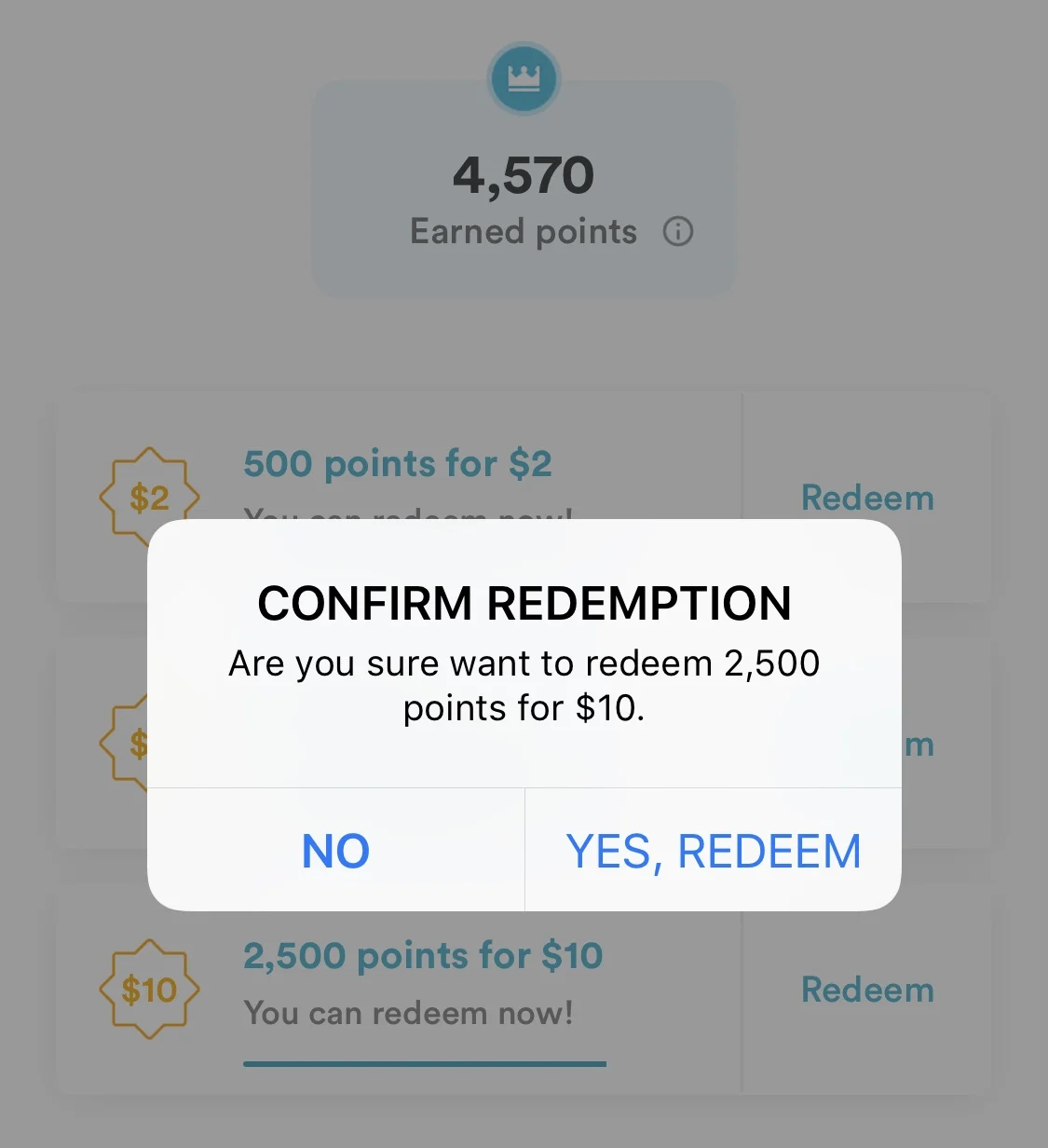 There are currently three redemption options on Waitrr so depending on your current balance, you should pick the right combination which allows you to exhaust your balance in the most efficient manner (if that is in fact your intention):