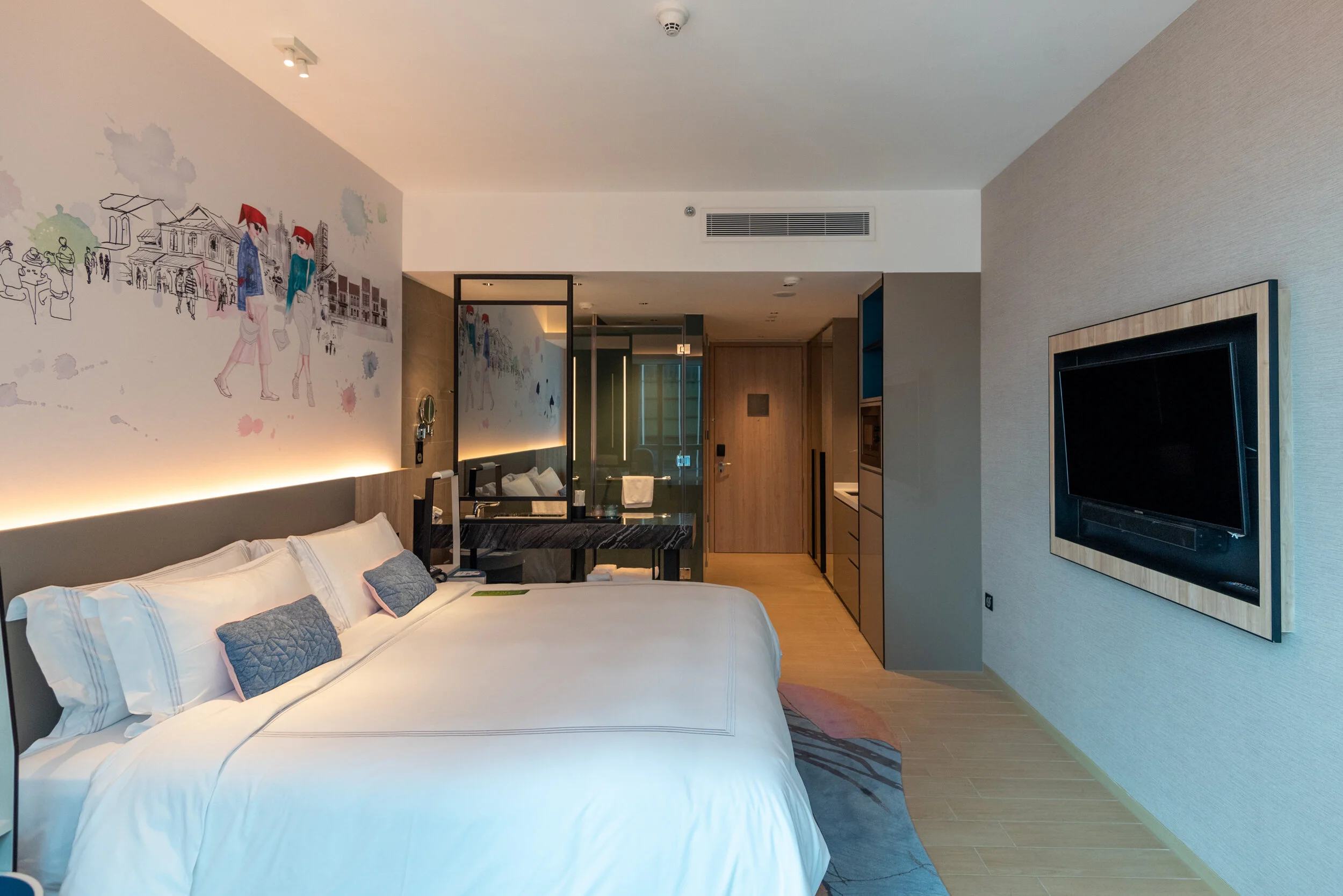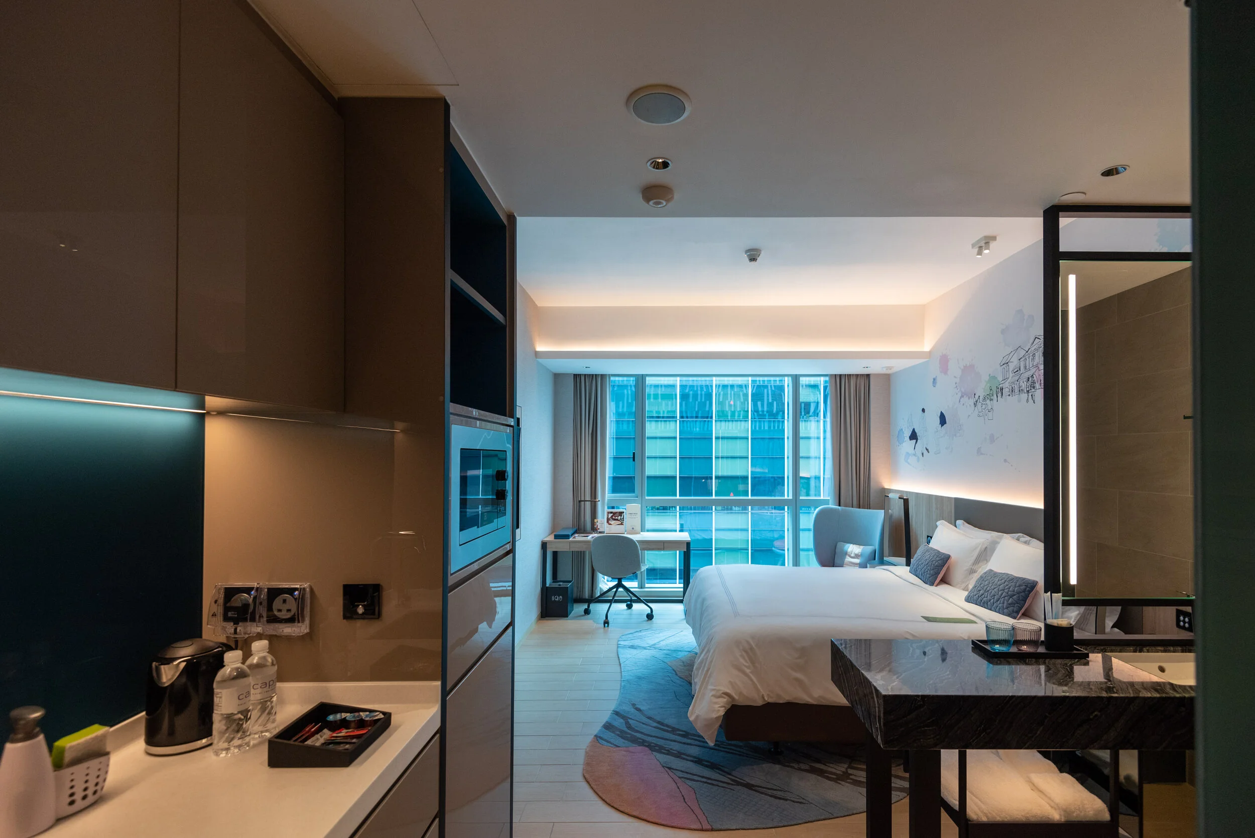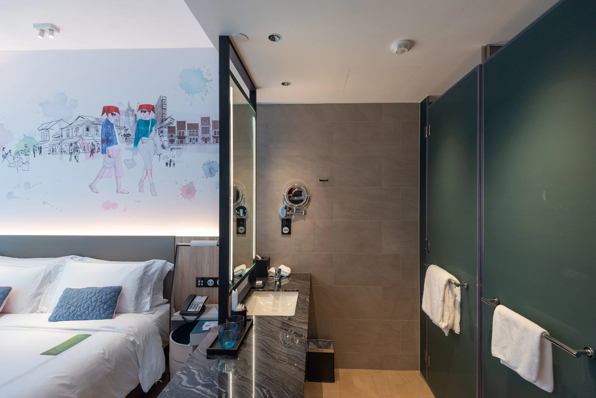 While the floor size of the Deluxe Room at Capri by Fraser, China Square is on the smaller end on paper, it feels larger than it actually is, due to the design of the room. On the other hand, the bathroom does not come with a door (the toilet and shower area have a separate glass door that cannot be locked) so that should be part of your consideration if you are sharing this room.