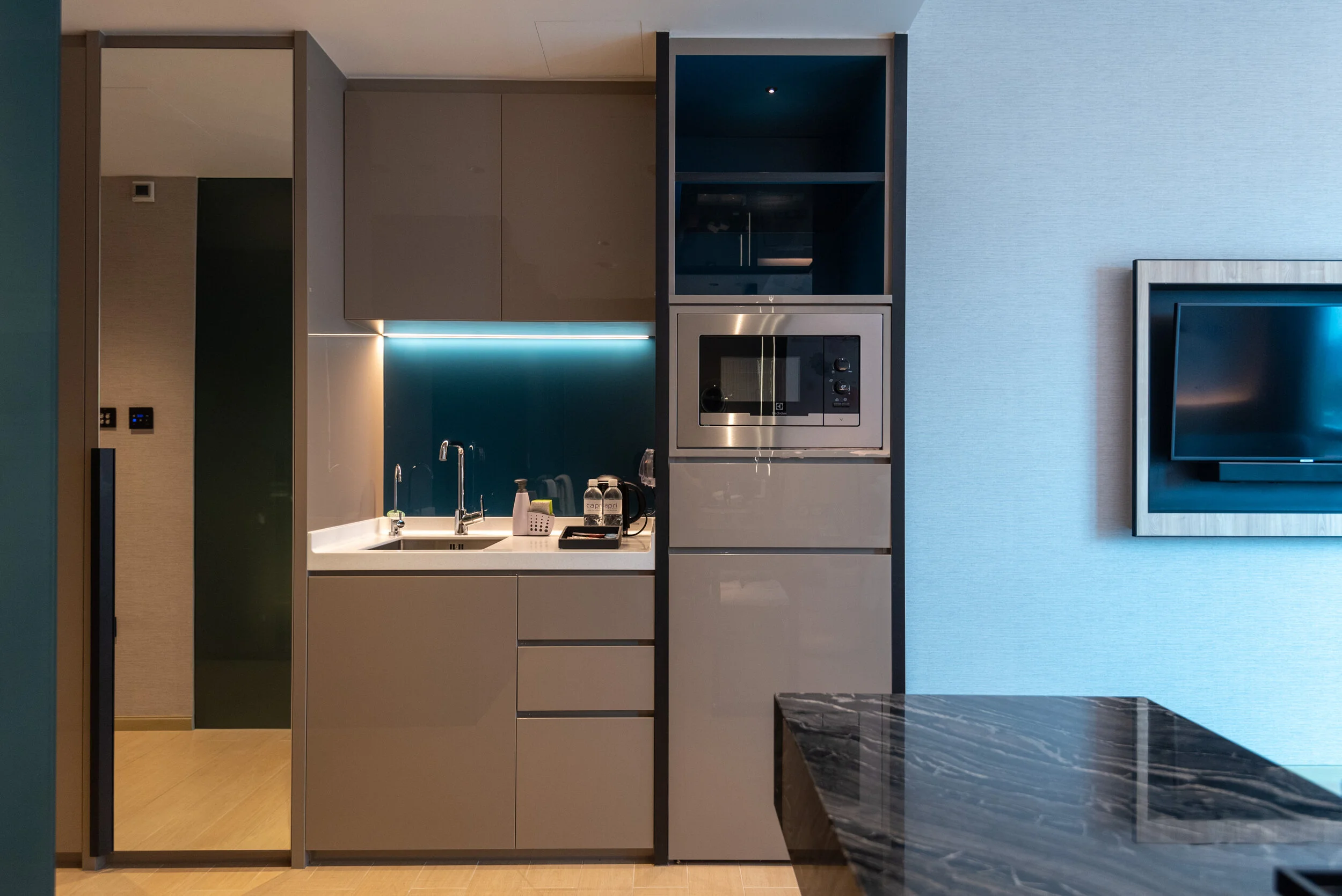 The rooms here at Capri by Fraser, China Square are probably more suitable for short-term staying guests (as opposed to serviced apartments like the Pan Pacific Serviced Suites Beach Road as an example). While you will find the conveniences of a service apartment here on property, the wardrobe space is limited and it feels a lot more like a hotel rather than a serviced apartment. Located next to the kitchenette is where you will also find other essentials like a safety deposit box (large enough to fit a 17" laptop) as well as an ironing board. For the sake of clarity, there is no laundry machine in your room but laundry service is offered to guests at a fee.