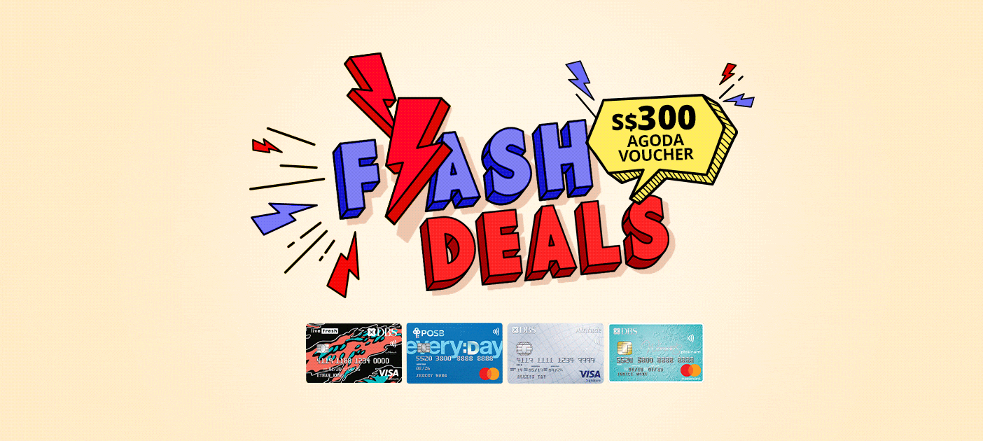 From 17-31 August 2020, apply for any one of the listed DBS or POSB credit cards on this page as a new customer to receive S$300 Agoda Voucher (applicable for both local and overseas hotel stays) when you spend a minimum of S$200 to the newly-approved card within the first 30 days from the card approval date. Eligible new customers will have to enter 'FLASHAGODA' in the promo code field during the online application.