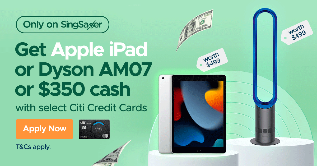 Get Latest Apple iPad, Dyson Tower Fan or S$350 Cash with Citi Credit Card - New Customers (16-30 November Only!)