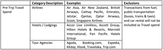 1x Chance for every S$100 spent on pre-travel bookings (e.g. flights and hotels)