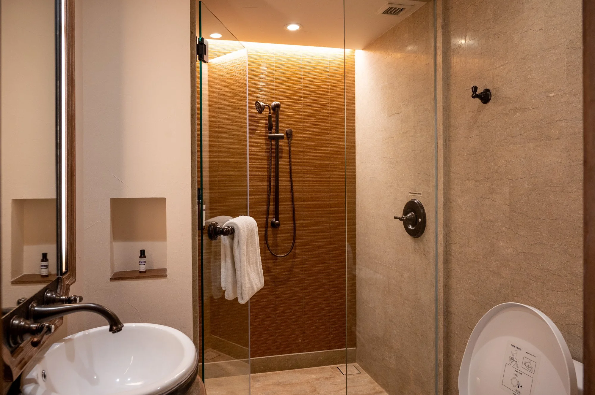 One of the things that I have grown to appreciate a lot about suites is the existence of a powder room, or a half bathroom outside. This is particularly great if you are sharing the room with a friend, or your partner, as it just makes it a lot more convenient during ‘peak hours’. The powder room of the Regency Suite is actually a full bathroom (minus a bathtub) as it comes with its own separate shower area and toilet. This guest bathroom is located near the entrance of the suite which makes it perfect if you have friends visiting and do not want them to walk through the bedroom. While the water pressure is great, I did find it difficult to get the water down to the right temperature in the guest bathroom. For whatever reason, it was always scorching hot (even after fiddling with the temperature control dial) so I never once used it during my stay.