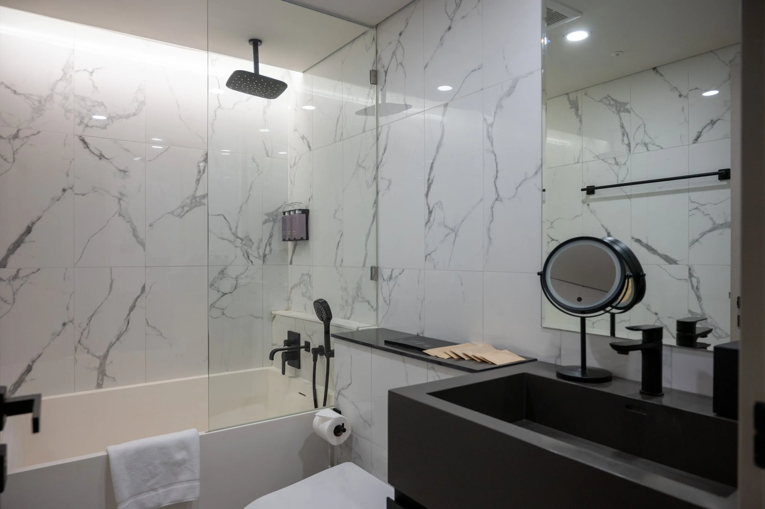 I was pleasantly surprised to find a deep-soaking tub in the TRIBE Studio, which also serves as the shower's wet area. However, those with mobility issues might find it challenging to use, as the tub is quite high and requires stepping over to get in. The water pressure from the shower was quite decent, but I did notice that the water temperature occasionally fluctuated. One moment you could be enjoying a nice warm shower, and the next, you’re suddenly hit with a burst of cold water.