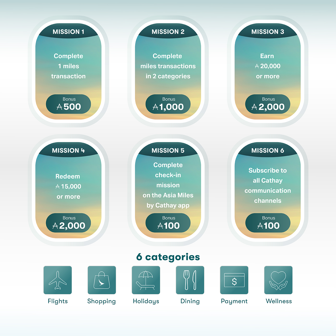 | Mission 6 | Opt-in to all Cathay communication channels | 100 |