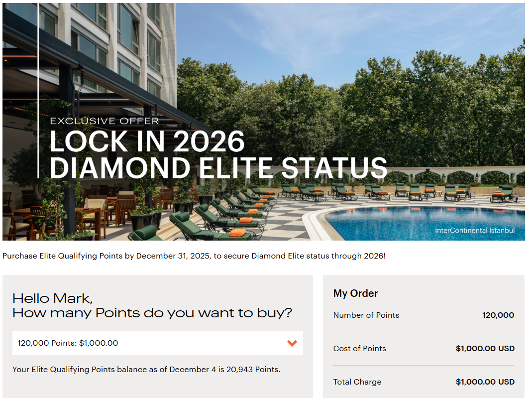 Targeted: Last Chance to Buy Back IHG Diamond Elite Status for 2026