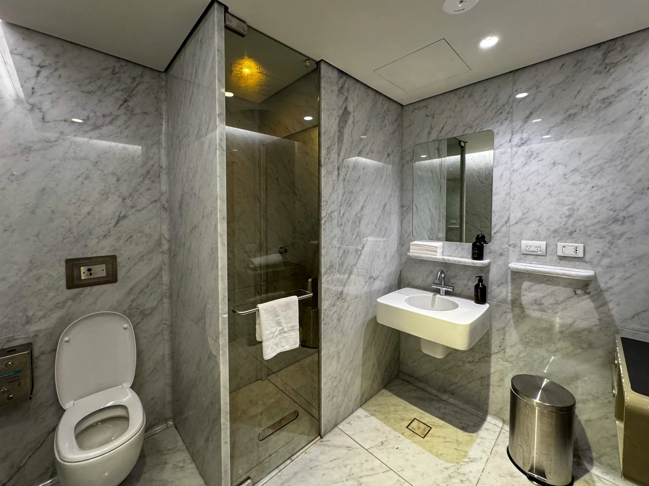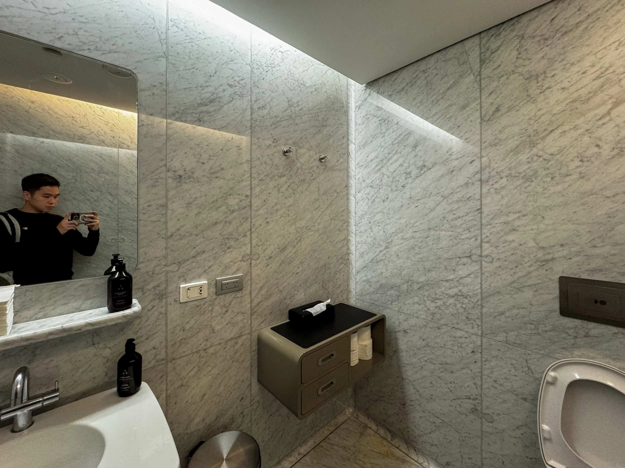 After arriving on an overnight flight from Singapore, the first order of business was to freshen up. I headed straight for the private shower suites, which offer an attached toilet and a separate rain shower. The rain shower is ideal if you’re looking for a full-body refresh, though perhaps less practical if you’re hoping to keep your hair dry. Towels and amenities - including disposable toothbrushes - are provided, though I did notice that not all items were replenished between guests. While this is easily resolved by requesting replacements from the staff, it’s a small detail that stood out, particularly for a lounge positioned as Qantas’ international flagship.