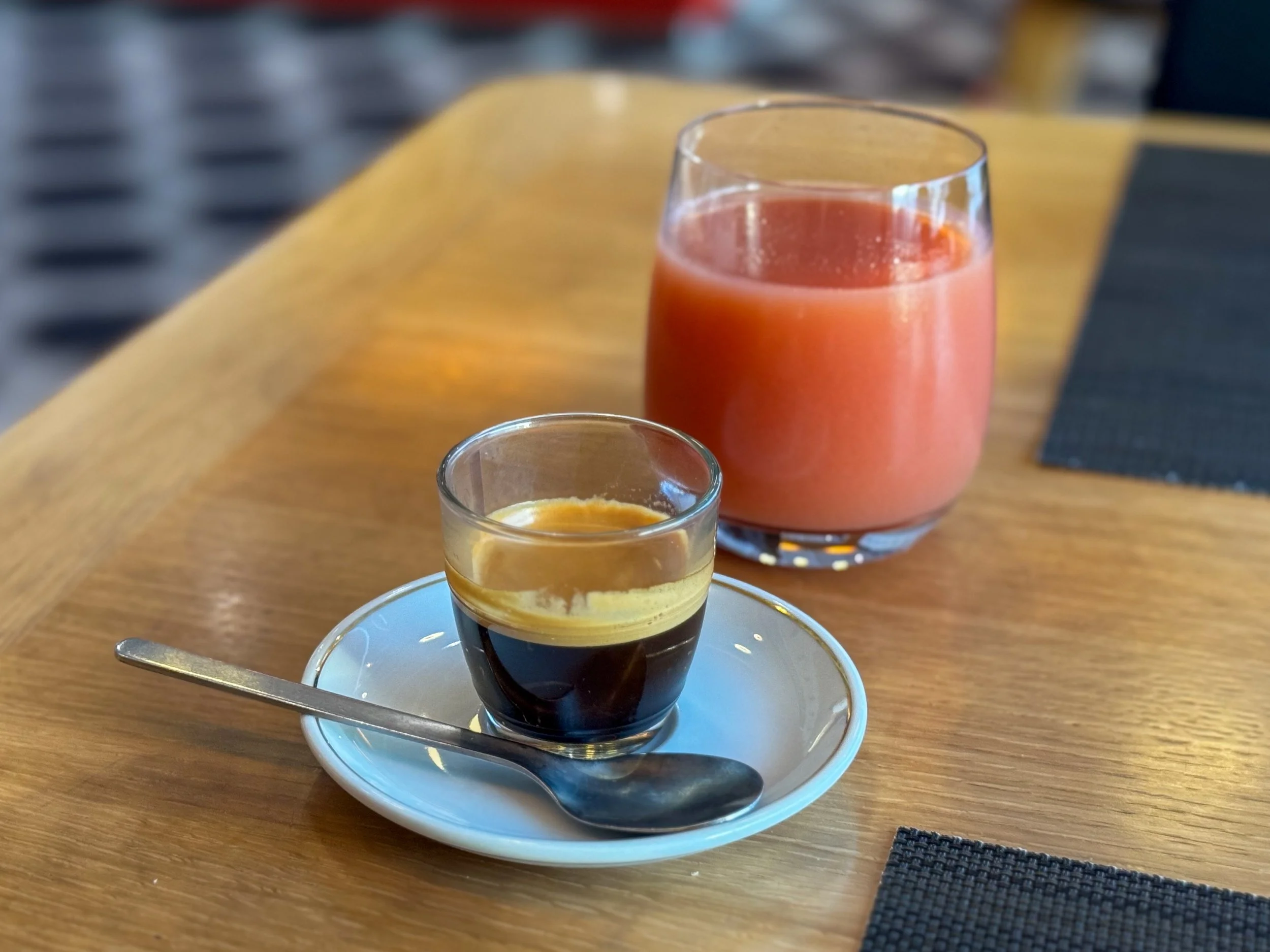 Beyond the hot dishes, the menu also features a thoughtful selection of cold-pressed juices and Indigenous-crafted teas, which adds a uniquely local dimension to the lounge experience. I opted for a cold-pressed juice made from watermelon, green apple, strawberry, and lime. Unfortunately, my coffee didn’t arrive with the rest of my order. It wasn’t a major inconvenience, and the oversight was quickly addressed once I flagged it with the server attending my section. Still, for a flagship First Class lounge, small service lapses like this do stand out.