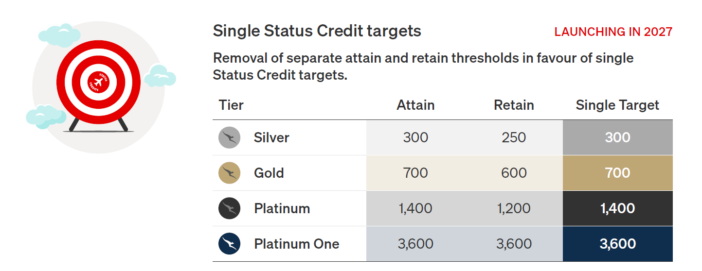 Qantas is moving away from the dual Attain and Retain targets. Starting in 2027, there will be a single Status Credit target for each tier level. For example, Gold status will require 700 Status Credits annually, regardless of whether you are reaching it for the first time or renewing your current status.